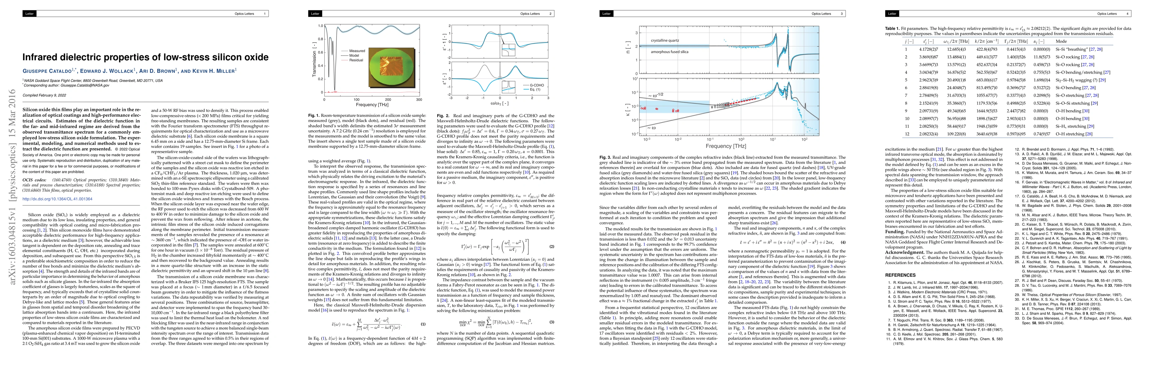 This paper investigates the dielectric properties of low-stress silicon oxide in the infrared range, deriving estimates from the transmittance spectrum and presenting the experimental and modeling techniques used to extract the dielectric function. The findings are crucial for applications in optical coatings and high-performance electrical circuits.