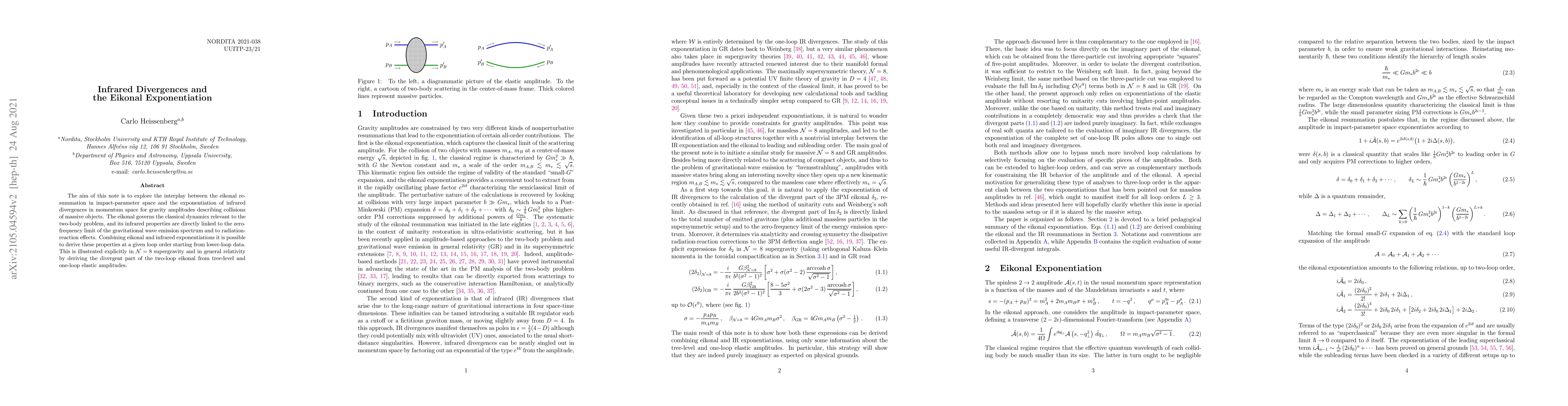 This paper investigates the connection between eikonal resummation in impact-parameter space and infrared exponentiation in momentum space for gravitational amplitudes in massive object collisions. The study demonstrates how combining these methods allows for the derivation of infrared divergences at a given loop order from lower-loop data, illustrated in $\mathcal{N}=8$ supergravity and general relativity.