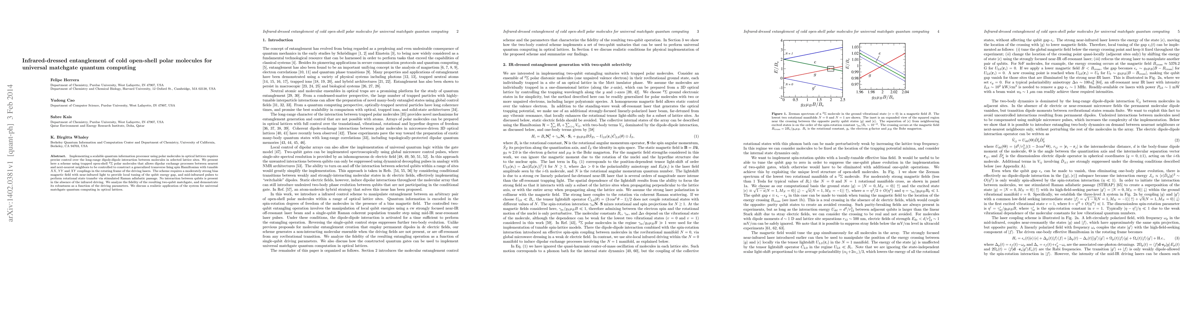 This paper proposes a method to control the entanglement of cold open-shell polar molecules in optical lattices using infrared light, enabling scalable quantum computing via a tunable transverse Ising spin Hamiltonian. The scheme demonstrates robust fidelity for two-qubit matchgate operations, paving the way for universal quantum computing.