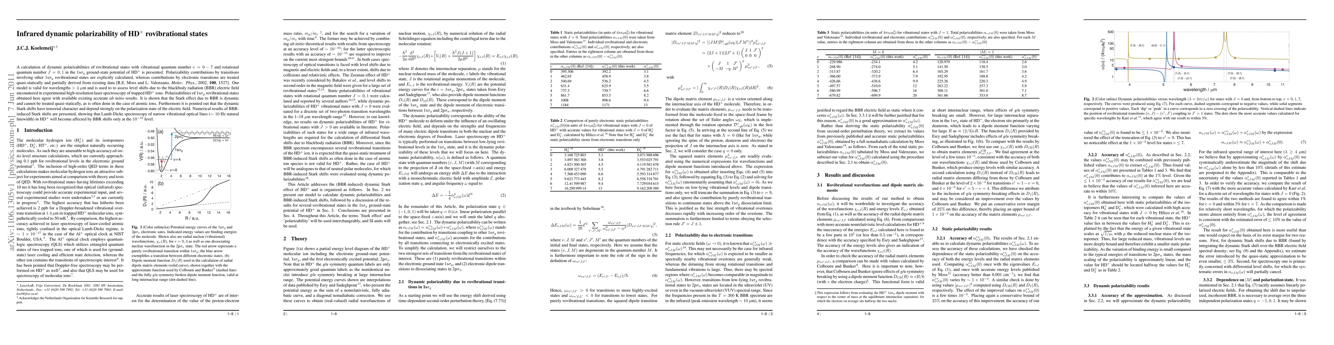 This paper calculates the dynamic polarizabilities of HD$^+$ rovibrational states, focusing on transitions within the 1s$\sigma_g$ ground-state potential. It demonstrates that the dynamic Stark effect due to blackbody radiation cannot be treated quasi-statically and highlights the tensorial nature of the dynamic Stark shifts, which depend on the electric field's polarization state.