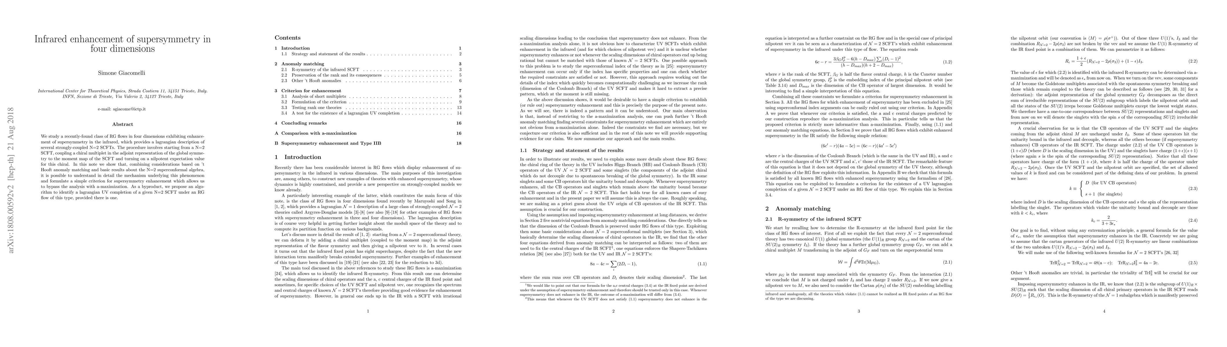 We study a recently-found class of RG flows in four dimensions exhibiting enhancement of supersymmetry in the infrared, which provides a lagrangian description of several strongly-coupled N=2 SCFTs. The procedure involves starting from a N=2 SCFT, coupling a chiral multiplet in the adjoint representation of the global symmetry to the moment map of the SCFT and turning on a nilpotent expectation value for this chiral. In this note we show that, combining considerations based on 't Hooft anomaly matching and basic results about the N=2 superconformal algebra, it is possible to understand in detail the mechanism underlying this phenomenon and formulate a simple criterion for supersymmetry enhancement which allows us to bypass the analysis with a-maximization. As a byproduct, we propose an algorithm to identify a lagrangian UV completion of a given N=2 SCFT under an RG flow of this type, provided there is one.