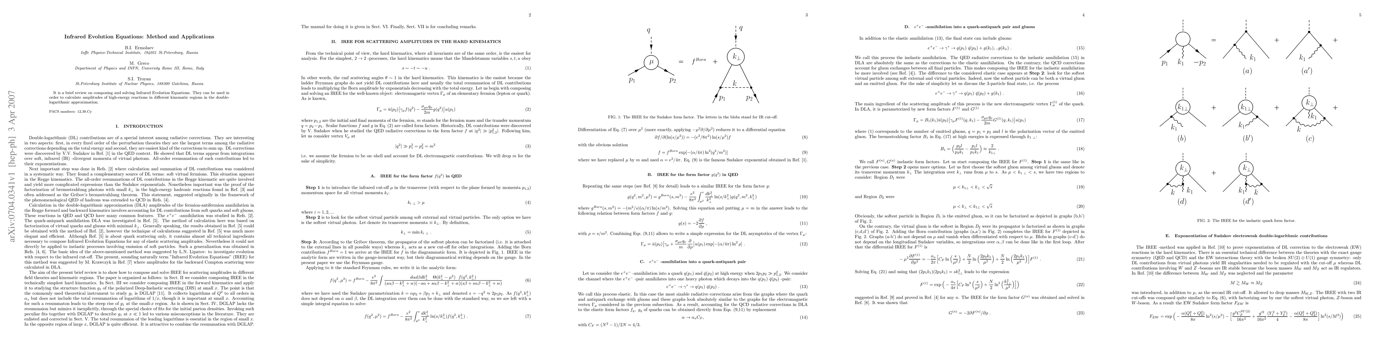 It is a brief review on composing and solving Infrared Evolution Equations. They can be used in order to calculate amplitudes of high-energy reactions in different kinematic regions in the double-logarithmic approximation.