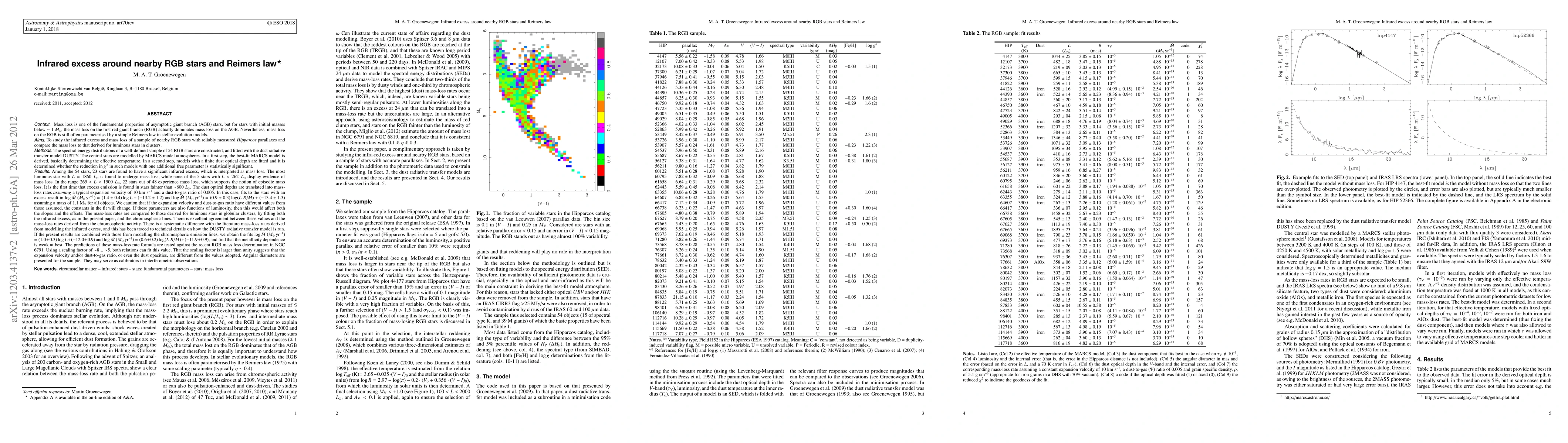 This paper investigates the infrared excess in 54 Red Giant Branch (RGB) stars, attributing it to mass loss and comparing mass-loss rates derived from infrared excess and chromospheric lines. It finds agreement between these rates but identifies discrepancies with literature values, suggesting technical issues in the radiative transfer model.