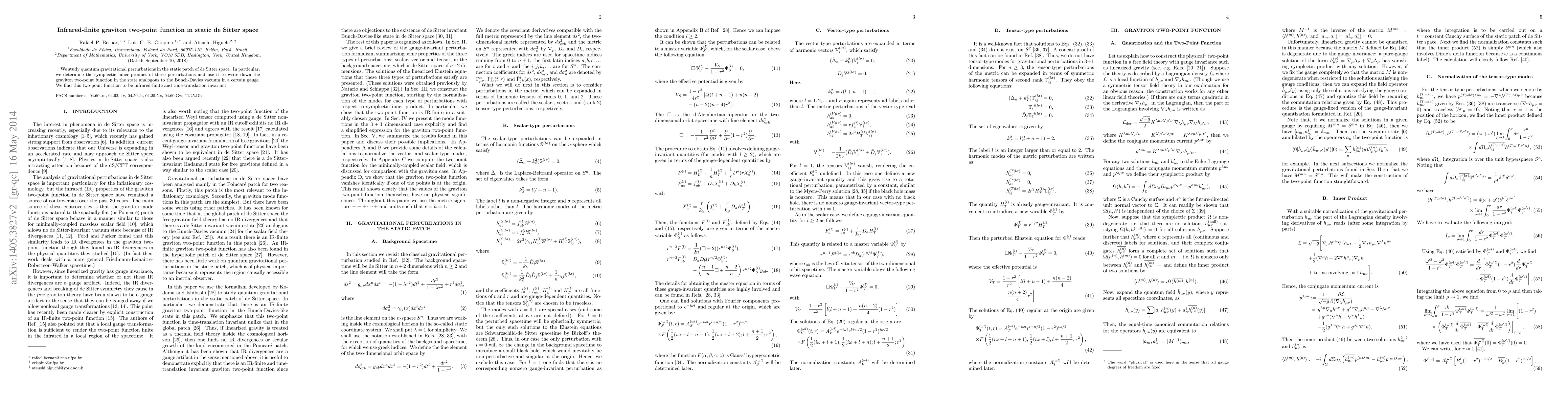 Researchers studied quantum gravitational perturbations in static de Sitter space, finding an infrared-finite two-point function that is time-translation invariant.