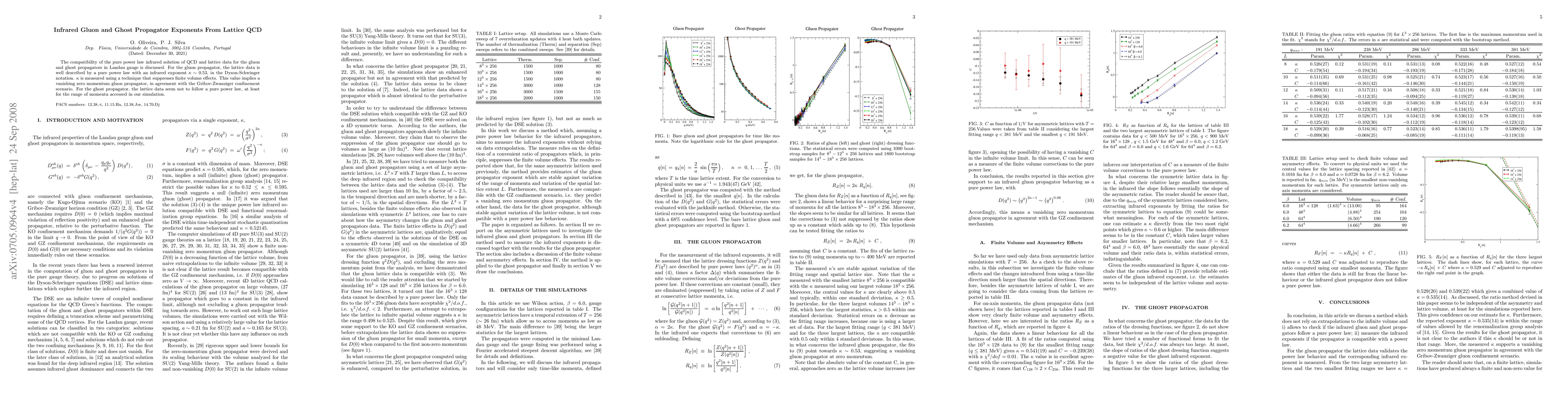 The compatibility of the pure power law infrared solution of QCD and lattice data for the gluon and ghost propagators in Landau gauge is discussed. For the gluon propagator, the lattice data is well described by a pure power law with an infrared exponent $\kappa \sim 0.53$, in the Dyson-Schwinger notation. $\kappa$ is measured using a technique that suppresses finite volume effects. This value implies a vanishing zero momentum gluon propagator, in agreement with the Gribov-Zwanziger confinement scenario. For the ghost propagator, the lattice data seem not to follow a pure power law, at least for the range of momenta accessed in our simulation.