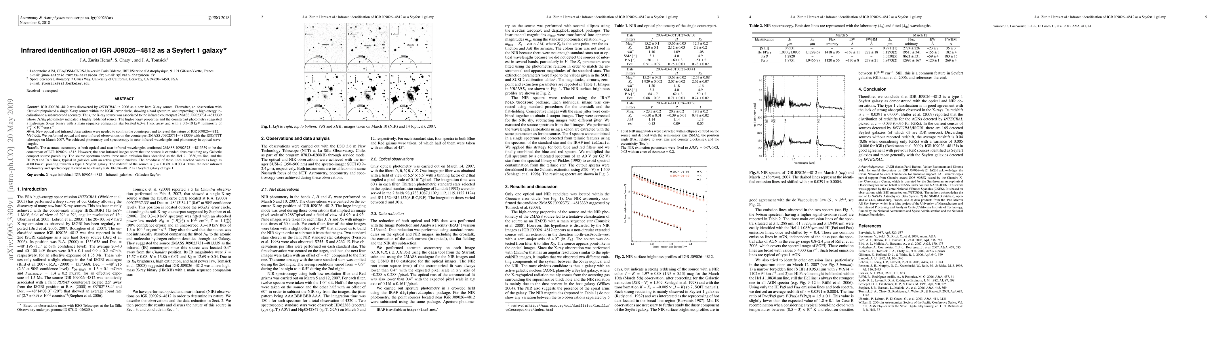 IGR J09026-4812 was discovered by INTEGRAL in 2006 as a new hard X-ray source. Thereafter, an observation with Chandra pinpointed a single X-ray source within the ISGRI error circle, showing a hard spectrum, and improving its high-energy localisation to a subarcsecond accuracy. Thus, the X-ray source was associated to the infrared counterpart 2MASS J09023731-4813339 whose JHKs photometry indicated a highly reddened source. The high-energy properties and the counterpart photometry suggested a high-mass X-ray binary with a main sequence companion star located 6.3-8.1 kpc away and with a 0.3-10 keV luminosity of 8e34 erg/s. New optical and infrared observations were needed to confirm the counterpart and to reveal the nature of IGR J09026-4812. We performed optical and near infrared observations on the counterpart 2MASS J09023731-4813339 with the ESO/NTT telescope on March 2007. We achieved photometry and spectroscopy in near infrared wavelengths and photometry in optical wavelengths. The accurate astrometry at both optical and near infrared wavelengths confirmed 2MASS J09023731-4813339 to be the counterpart of IGR J09026-4812. However, the near infrared images show that the source is extended, thus excluding any Galactic compact source possibility. The source spectrum shows three main emission lines identified as the HeI lambda 1.0830 micron line, and the HI Pa_beta and Pa_alpha lines, typical in galaxies with an active galactic nucleus. The broadness of these lines reached values as large as 4000 km/s pointing towards a type 1 Seyfert galaxy. The redshift of the source is z=0.0391(4). Thus, the near infrared photometry and spectroscopy allowed us to classify IGR J09026-4812 as a Seyfert galaxy of type 1.