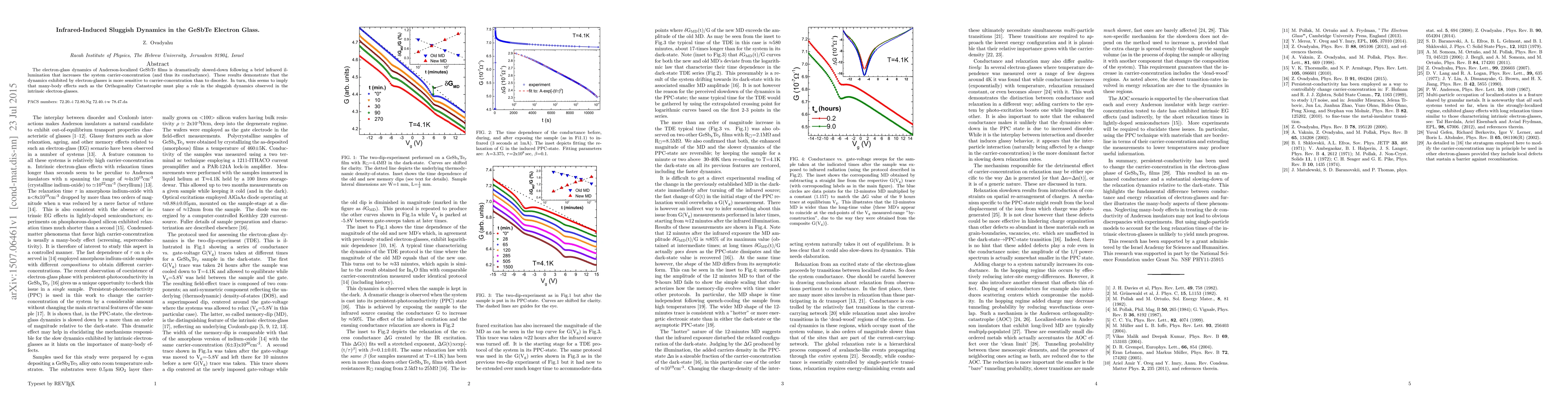 This study reveals that infrared illumination significantly slows down the electron-glass dynamics in GeSbTe films by increasing carrier concentration, indicating that dynamics are more responsive to carrier changes than to disorder. The findings suggest many-body effects like the Orthogonality Catastrophe contribute to the observed sluggish dynamics.