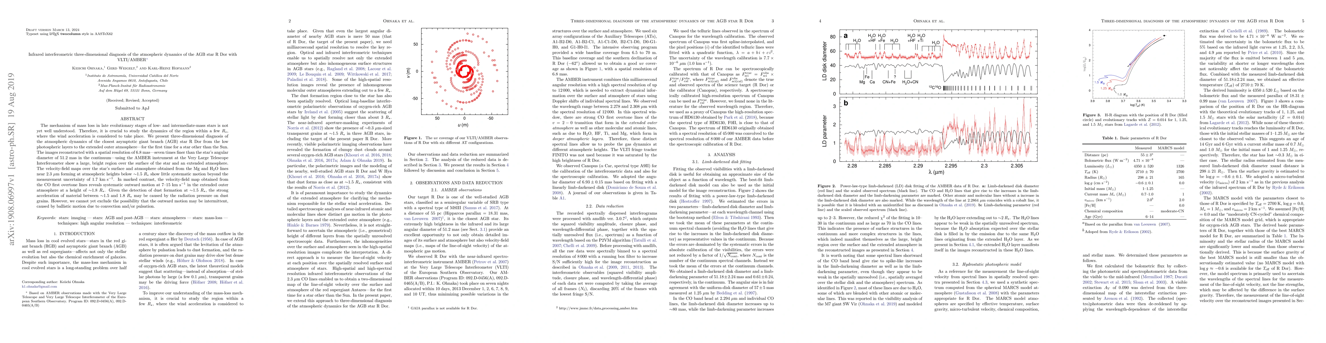 Researchers used a new technique to study the atmospheric dynamics of the star R Dor, finding strong outward motion in its outer atmosphere at high speeds, which may be caused by radiation pressure on dust grains or intermittent ballistic motion.