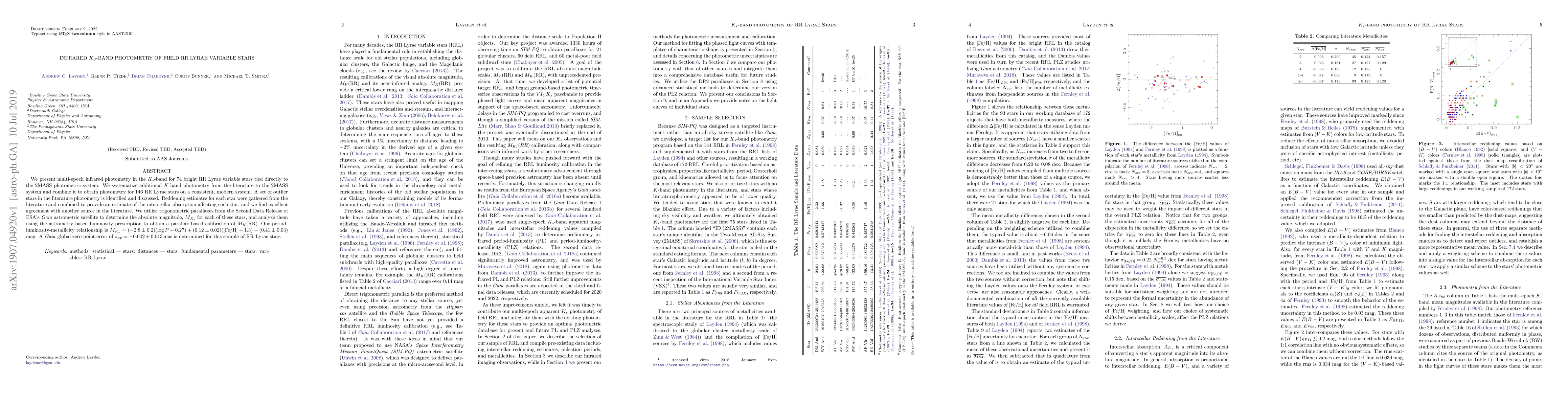 This paper presents multi-epoch $K_s$-band infrared photometry for 146 RR Lyrae variable stars, calibrated to the 2MASS system, and uses Gaia parallaxes to derive an absolute magnitude and a period-luminosity-metallicity relationship. A Gaia global zero-point error is also determined for this sample.