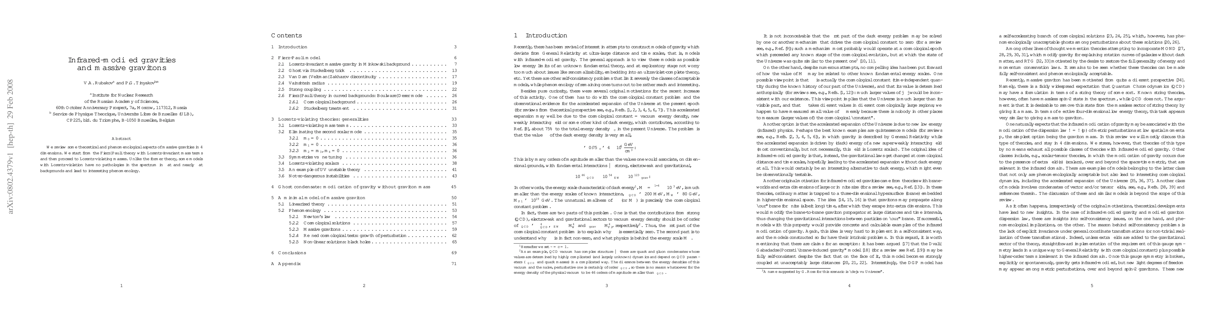 We review some theoretical and phenomenological aspects of massive gravities in 4 dimensions. We start from the Fierz--Pauli theory with Lorentz-invariant mass terms and then proceed to Lorentz-violating masses. Unlike the former theory, some models with Lorentz-violation have no pathologies in the spectrum in flat and nearly flat backgrounds and lead to interesting phenomenology.
