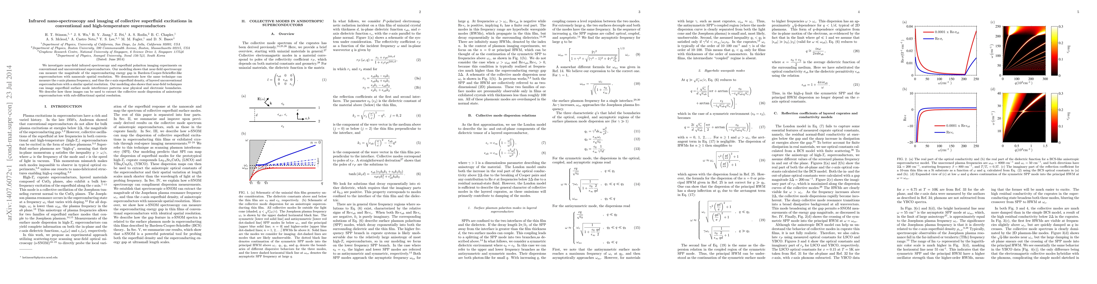 This paper explores near-field infrared spectroscopy and imaging to measure superconducting energy gaps and c-axis plasma frequencies in conventional and high-temperature superconductors, demonstrating nanoscale spatial resolution and revealing superfluid surface mode interference patterns.