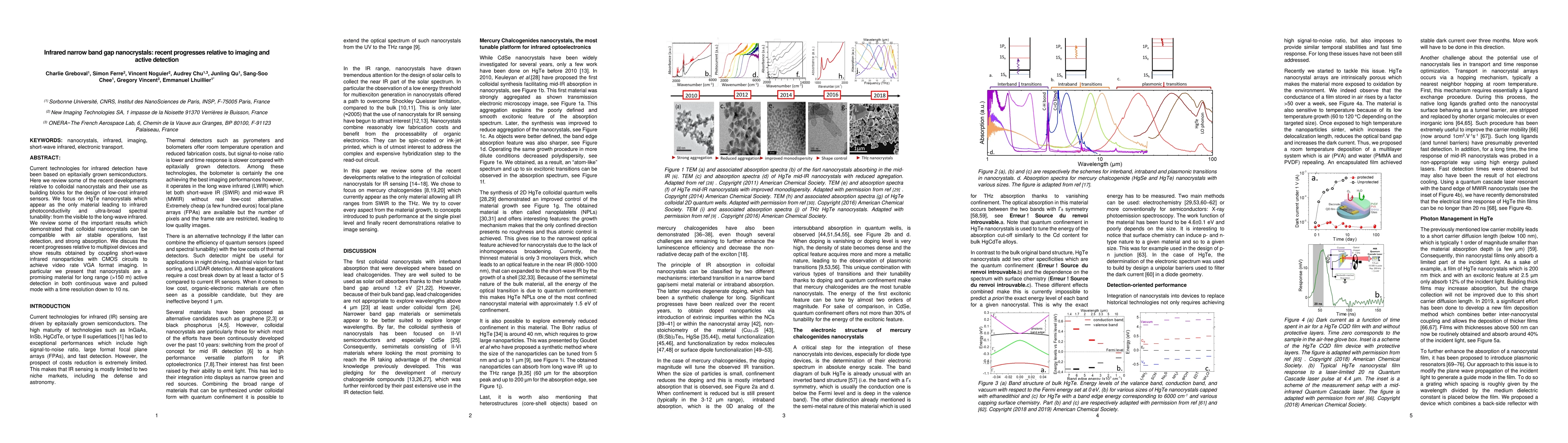 This paper reviews recent advancements in the use of colloidal nanocrystals, particularly HgTe nanocrystals, for low-cost infrared sensors. It highlights the material's broad spectral tunability and successful integration with CMOS circuits for high-speed imaging and long-range active detection.