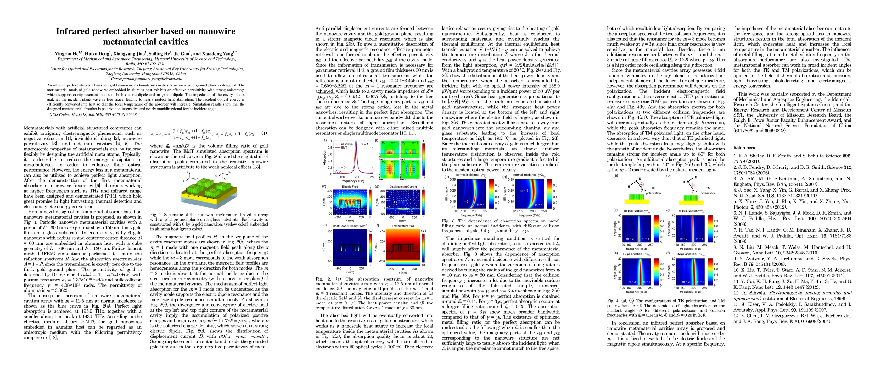 This work is novel because it proposes a new approach to achieve infrared perfect absorption using a nanowire metamaterial cavity array.