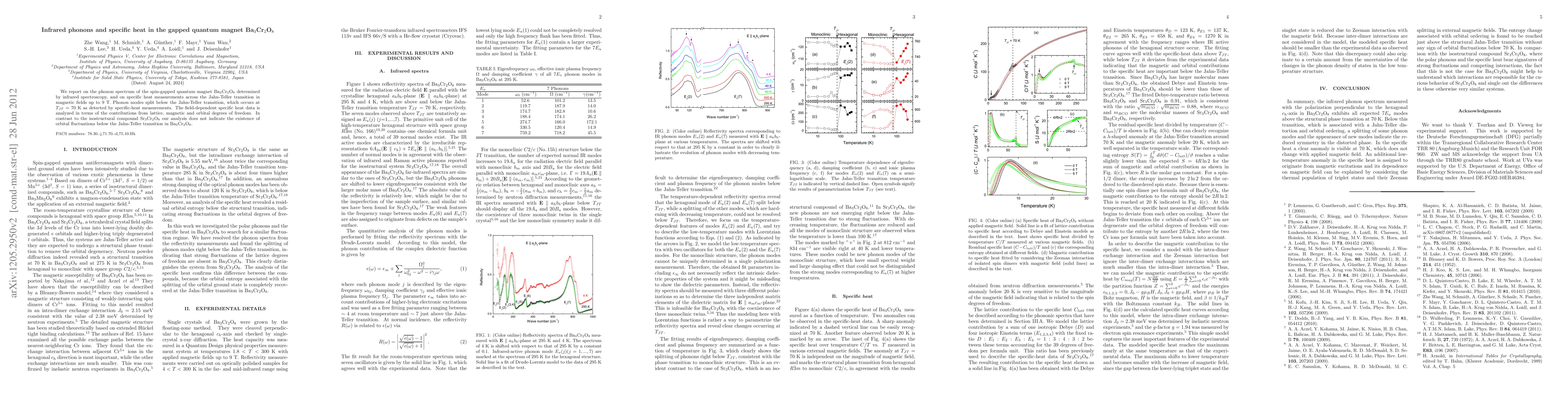 We report on the phonon spectrum of Ba3Cr2O8 determined by infrared spectroscopy, and on specific heat measurements across the Jahn-Teller transition in magnetic fields up to 9 T. Phonon modes split below the Jahn-Teller transition, which occurs at T_{JT} = 70 K as detected by specific heat measurements. The field-dependent specific heat data is analyzed in terms of the contributions from lattice, magnetic and orbital degrees of freedom. In contrast to the isostructural compound Sr3Cr2O8 our analysis does not indicate the existence of orbital fluctuations below the Jahn-Teller transition in Ba3Cr2O8.