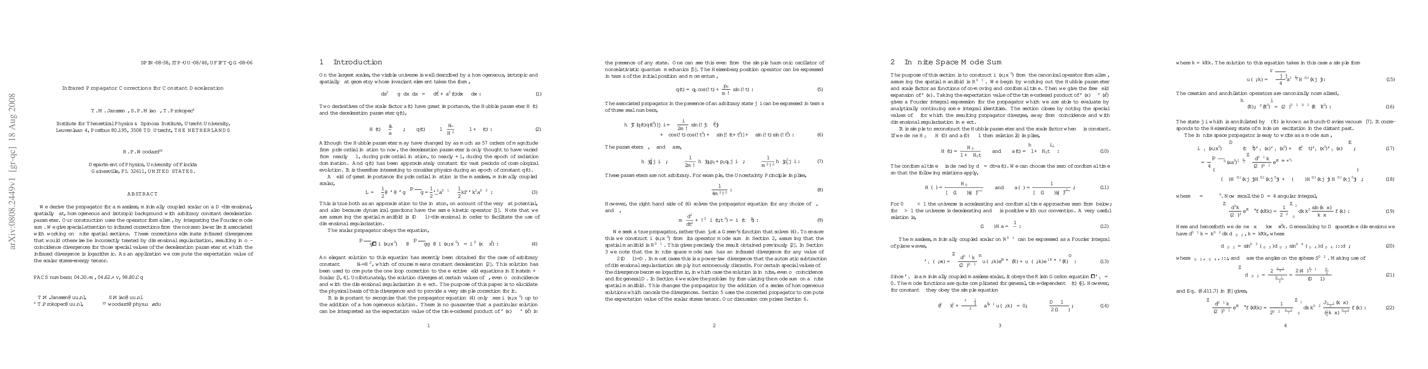 We derive the propagator for a massless, minimally coupled scalar on a $D$-dimensional, spatially flat, homogeneous and isotropic background with arbitrary constant deceleration parameter. Our construction uses the operator formalism, by integrating the Fourier mode sum. We give special attention to infrared corrections from the nonzero lower limit associated with working on finite spatial sections. These corrections eliminate infrared divergences that would otherwise be incorrectly treated by dimensional regularization, resulting in off-coincidence divergences for those special values of the deceleration parameter at which the infrared divergence is logarithmic. As an application we compute the expectation value of the scalar stress-energy tensor.