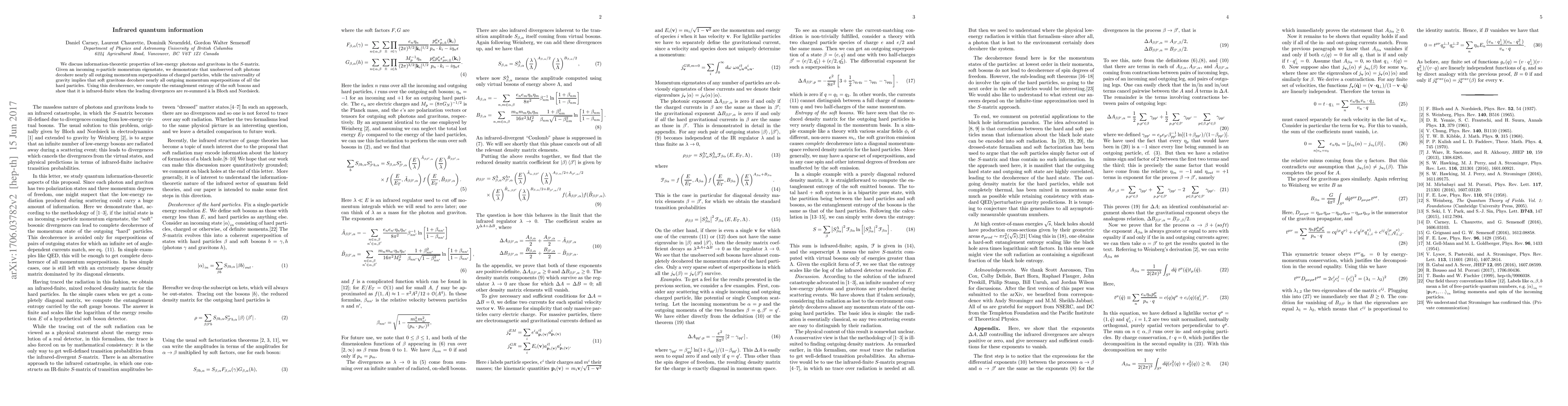 We discuss information-theoretic properties of low-energy photons and gravitons in the S-matrix. Given an incoming n-particle momentum eigenstate, we demonstrate that unobserved soft photons decohere nearly all outgoing momentum superpositions of charged particles, while the universality of gravity implies that soft gravitons decohere nearly all outgoing momentum superpositions of all the hard particles. Using this decoherence, we compute the entanglement entropy of the soft bosons and show that it is infrared-finite when the leading divergences are re-summed a la Bloch and Nordsieck.