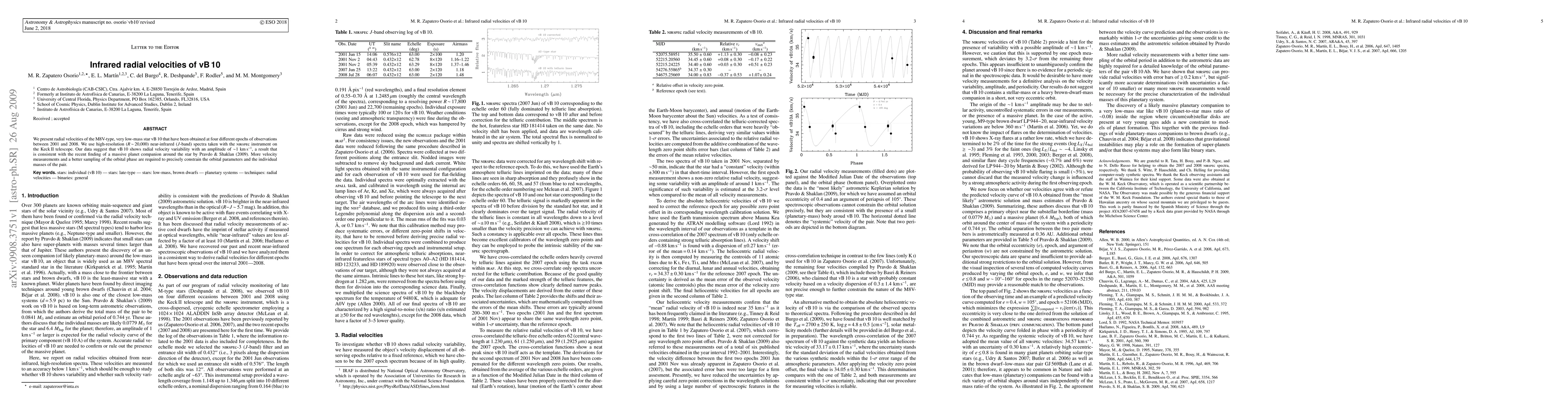 This study reports radial velocity measurements of the M8V-type star vB 10 using high-resolution near-infrared spectra, revealing variability consistent with a massive planet companion. Further observations are needed to determine the orbital parameters and masses accurately.