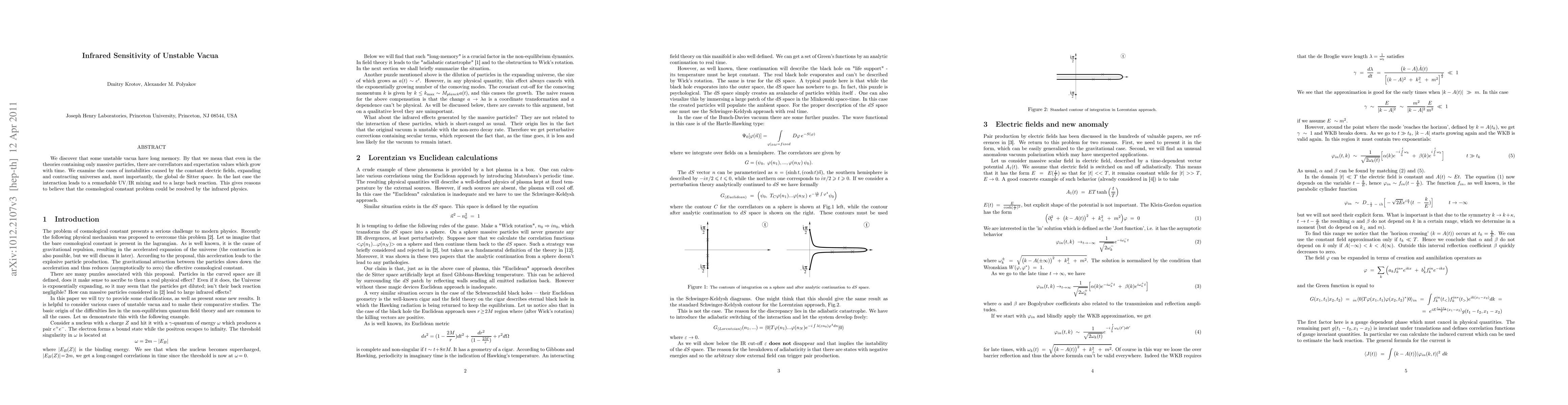 We discover that some unstable vacua have long memory. By that we mean that even in the theories containing only massive particles, there are correllators and expectation values which grow with time. We examine the cases of instabilities caused by the constant electric fields, expanding and contracting universes and, most importantly, the global de Sitter space. In the last case the interaction leads to a remarkable UV/IR mixing and to a large back reaction. This gives reasons to believe that the cosmological constant problem could be resolved by the infrared physics.