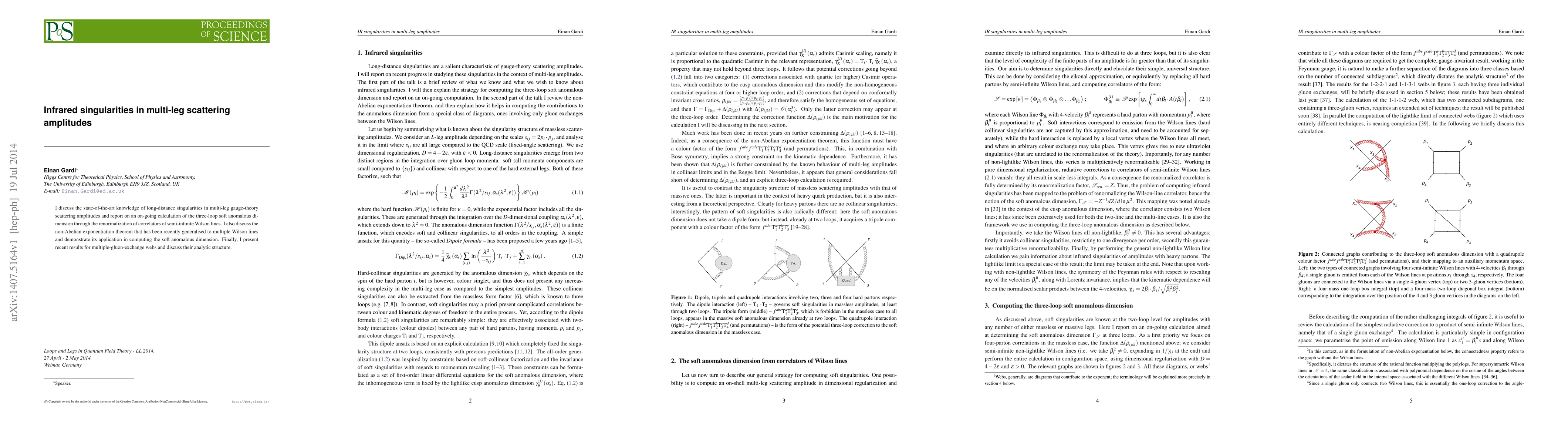 I discuss the state-of-the-art knowledge of long-distance singularities in multi-leg gauge-theory scattering amplitudes and report on an on-going calculation of the three-loop soft anomalous dimension through the renormalization of correlators of semi-infinite Wilson lines. I also discuss the non-Abelian exponentiation theorem that has been recently generalised to multiple Wilson lines and demonstrate its application in computing the soft anomalous dimension. Finally, I present recent results for multiple-gluon-exchange webs and discuss their analytic structure.