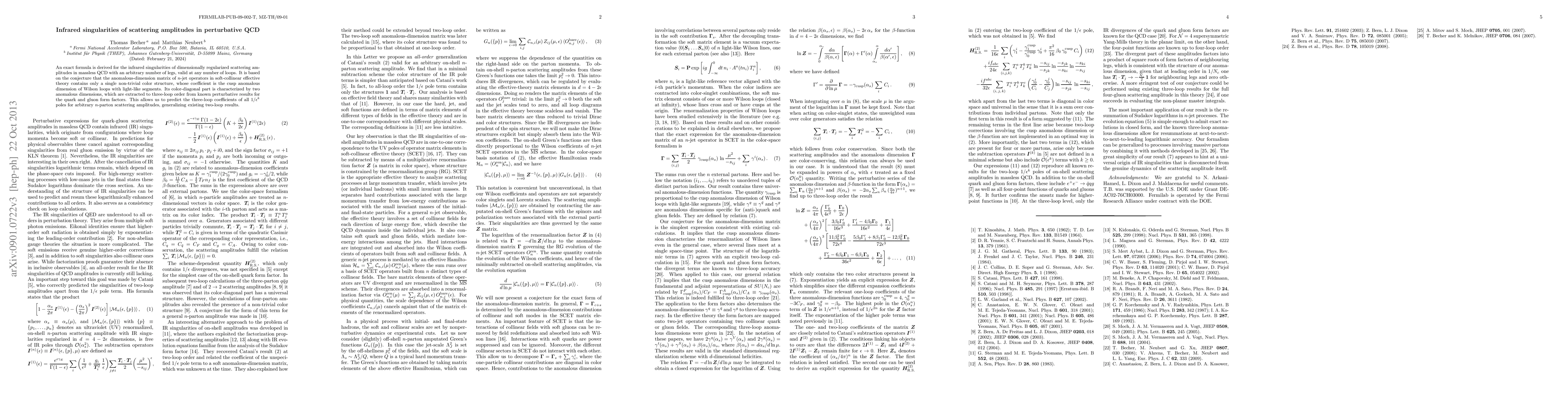 This paper derives an exact formula for infrared singularities in scattering amplitudes in perturbative QCD, based on the conjecture that the anomalous-dimension matrix of n-jet operators has a single non-trivial color structure. The study predicts the three-loop coefficients of all 1/ε^k poles for n-parton scattering amplitudes, extending previous two-loop results.