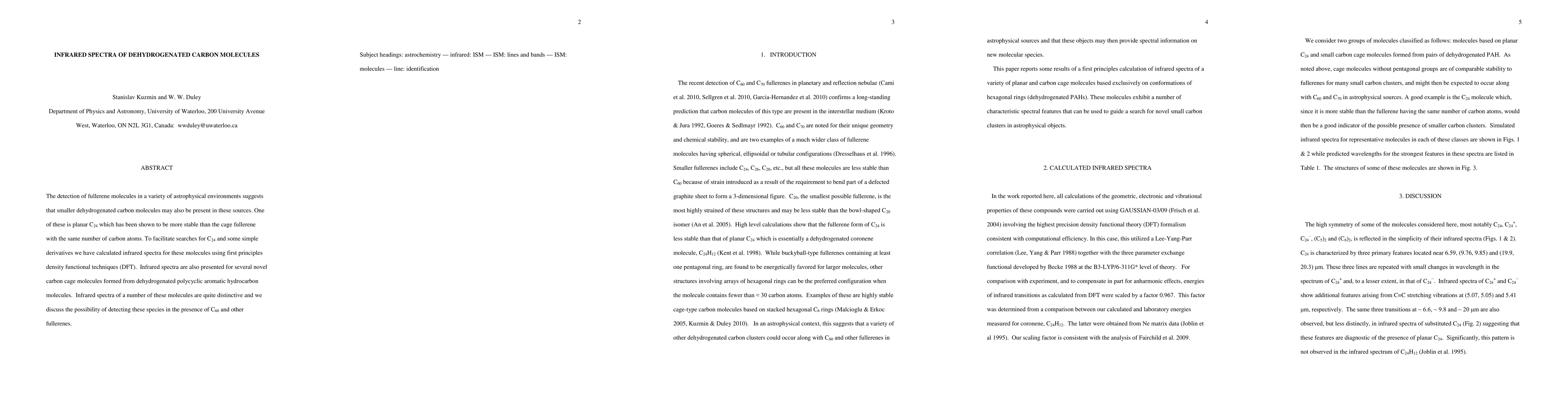 This paper calculates infrared spectra for dehydrogenated carbon molecules, including planar C24 and novel carbon cage molecules, using density functional techniques to aid in their detection in astrophysical environments alongside fullerenes like C60. The distinctive infrared spectra of these molecules suggest potential observational identification.