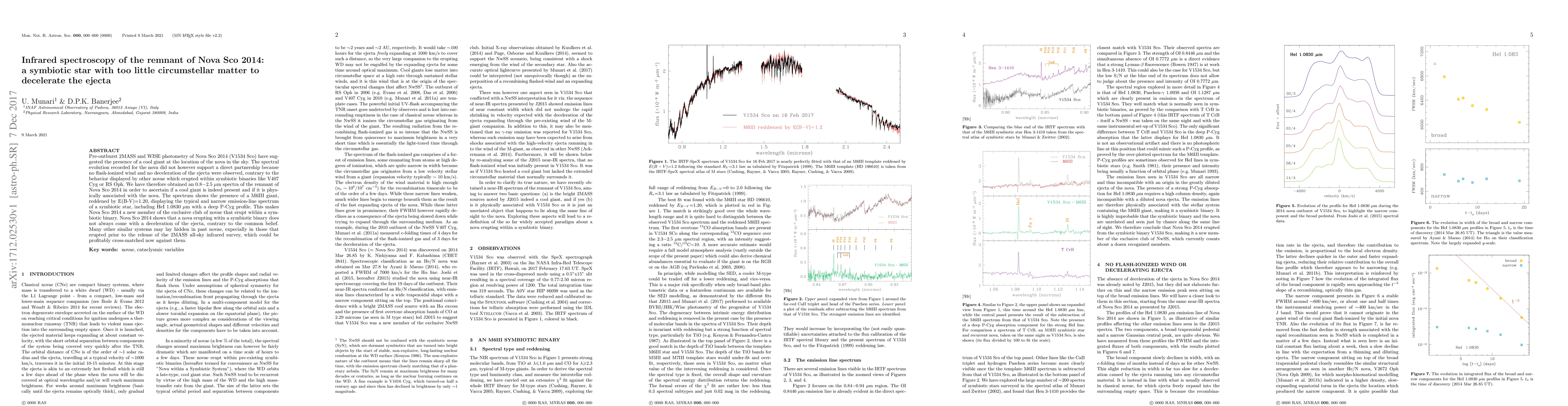 This paper investigates the infrared spectrum of Nova Sco 2014, revealing a M6III giant star in a symbiotic binary system, contrary to expectations of ejected material deceleration. The findings suggest that many similar hidden systems may exist among past novae.