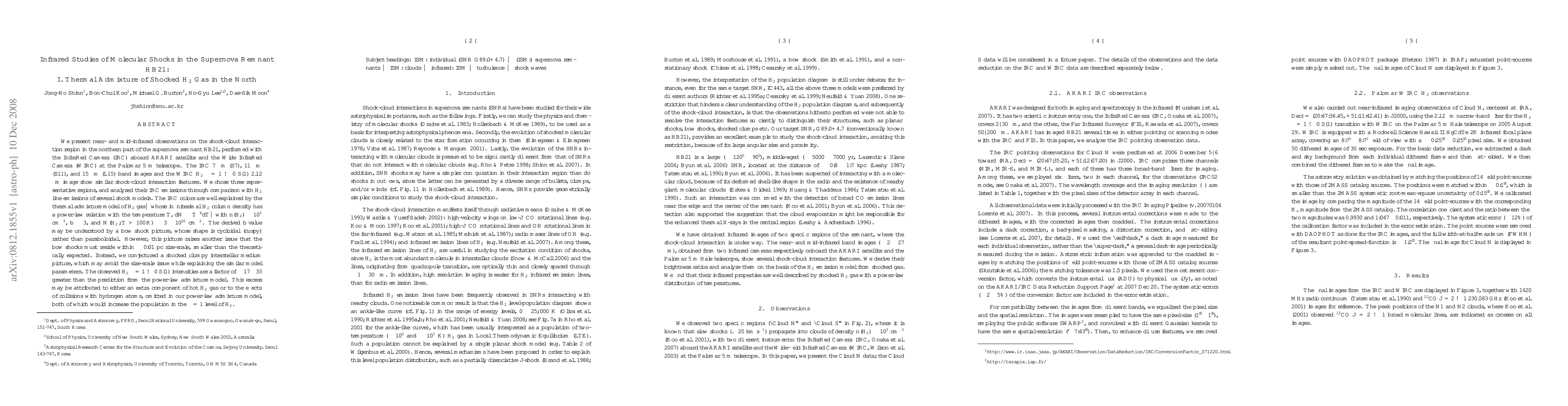 This paper presents infrared observations of shock-cloud interactions in the supernova remnant HB21, showing that the IRC and WIRC data align with a thermal admixture model of shocked H2 gas. The derived model parameters suggest a cycloidal bow shock shape, but the small size scale raises questions; thus, a clumpy interstellar medium is proposed as an alternative explanation.