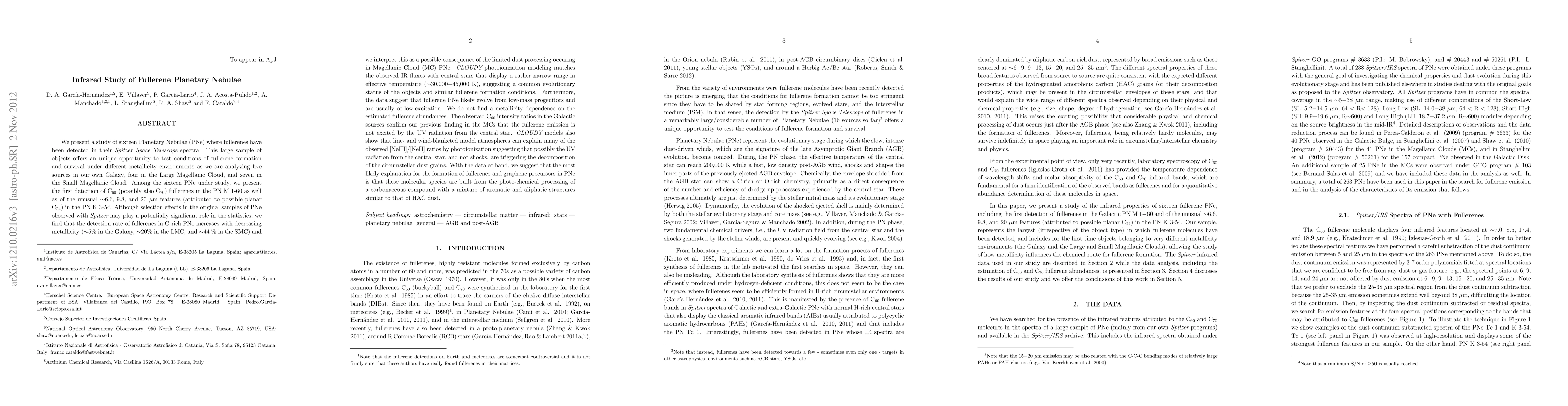 We present a study of 16 PNe where fullerenes have been detected in their Spitzer spectra. This large sample of objects offers an unique opportunity to test conditions of fullerene formation and survival under different metallicity environments as we are analyzing five sources in our own Galaxy, four in the LMC, and seven in the SMC. Among the 16 PNe under study, we present the first detection of C60 (possibly also C70) fullerenes in the PN M 1-60 as well as of the unusual 6.6, 9.8, and 20 um features (possible planar C24) in the PN K 3-54. Although selection effects in the original samples of PNe observed with Spitzer may play a potentially significant role in the statistics, we find that the detection rate of fullerenes in C-rich PNe increases with decreasing metallicity (5% in the Galaxy, 20% in the LMC, and 44% in the SMC). CLOUDY photoionization modeling matches the observed IR fluxes with central stars that display a rather narrow range in effective temperature (30,000-45,000 K), suggesting a common evolutionary status of the objects and similar fullerene formation conditions. The observed C60 intensity ratios in the Galactic sources confirm our previous finding in the MCs that the fullerene emission is not excited by the UV radiation from the central star. CLOUDY models also show that line- and wind-blanketed model atmospheres can explain many of the observed [NeIII]/[NeII] ratios by photoionization suggesting that possibly the UV radiation from the central star, and not shocks, are triggering the decomposition of the circumstellar dust grains. With the data at hand, we suggest that the most likely explanation for the formation of fullerenes and graphene precursors in PNe is that these molecular species are built from the photo-chemical processing of a carbonaceous compound with a mixture of aromatic and aliphatic structures similar to that of HAC dust.