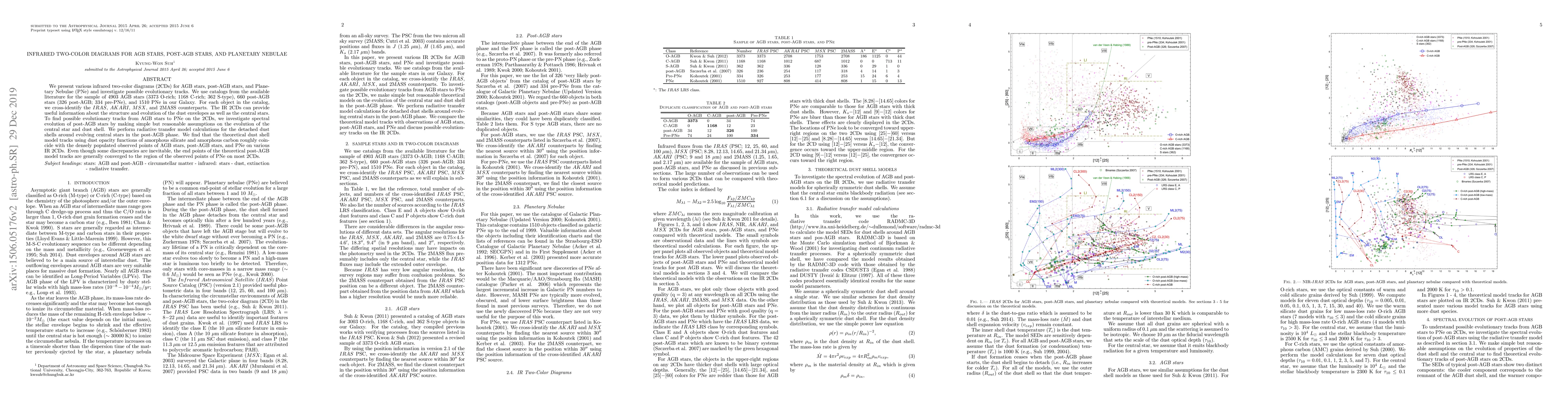 This paper presents infrared two-color diagrams for AGB stars, post-AGB stars, and Planetary Nebulae, using data from multiple catalogs and cross-identified infrared sources. It finds that theoretical dust shell model tracks align with observed points, suggesting a coherent evolutionary path from AGB stars to Planetary Nebulae.