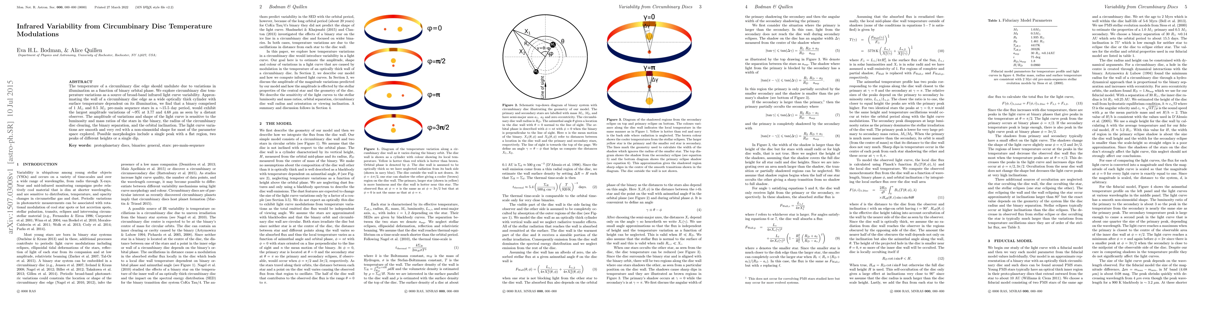 The temperature of a circumbinary disc edge should undulate due to variations in illumination as a function of binary orbital phase. We explore circumbinary disc temperature variations as a source of broad-band infrared light curve variability. Approximating the wall of a circumbinary disc edge as a wide optically thick cylinder with surface temperature dependent on its illumination, we find that a binary comprised of 1 M$_\odot$ and 0.5 M$_\odot$ pre-main sequence stars in a $\sim$15.5 day period, would exhibit the largest amplitude variations of $\sim$9% at 3.77 and 4.68 {\mu}m as seen by a distant observer. The amplitude of variations and shape of the light curve is sensitive to the luminosity and mass ratios of the stars in the binary, the radius of the circumbinary disc clearing, the binary separation, and the orbital inclination. The light curve variations are smooth and very red with a non-sinusoidal shape for most of the parameter space explored. Possible morphologies include a single peak with a flat region, two peaks of different heights or a single dip.