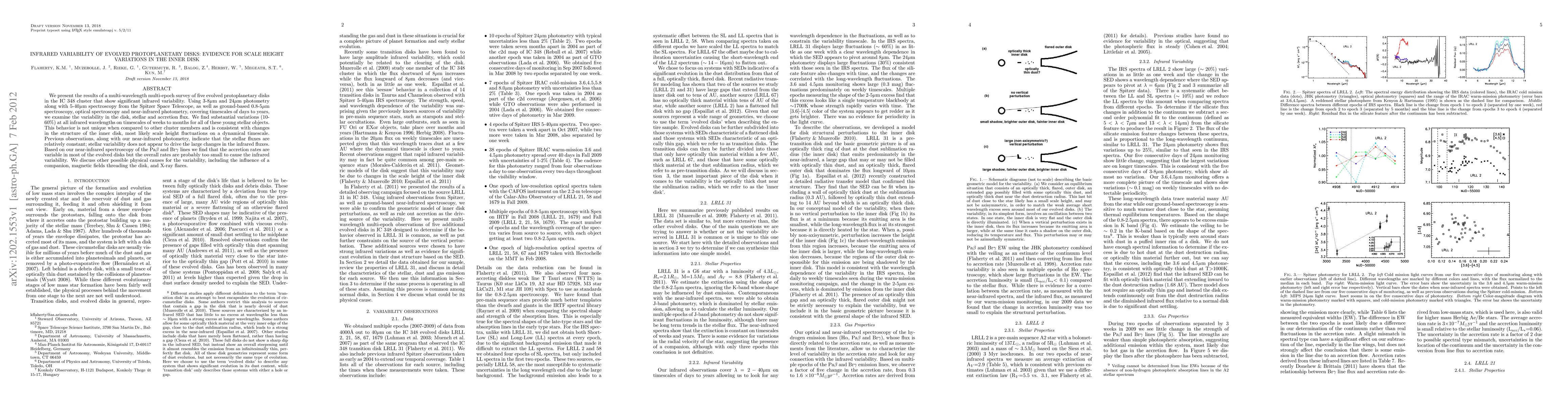 We present the results of a multi-wavelength multi-epoch survey of five evolved protoplanetary disks in the IC 348 cluster that show significant infrared variability. Using 3-8micron and 24micron photometry along with 5-40micron spectroscopy from the Spitzer Space Telescope, as well as ground-based 0.8-5micron spectroscopy, optical spectroscopy and near-infrared photometry, covering timescales of days to years, we examine the variability in the disk, stellar and accretion flux. We find substantial variations (10-60%) at all infrared wavelengths on timescales of weeks to months for all of these young stellar objects. This behavior is not unique when compared to other cluster members and is consistent with changes in the structure of the inner disk, most likely scale height fluctuations on a dynamical timescale. Previous observations, along with our near-infrared photometry, indicate that the stellar fluxes are relatively constant; stellar variability does not appear to drive the large changes in the infrared fluxes. Based on our near-infrared spectroscopy of the Pa-beta and Br-gamma lines we find that the accretion rates are variable in most of the evolved disks but the overall rates are probably too small to cause the infrared variability. We discuss other possible physical causes for the variability, including the influence of a companion, magnetic fields threading the disk, and X-ray flares.