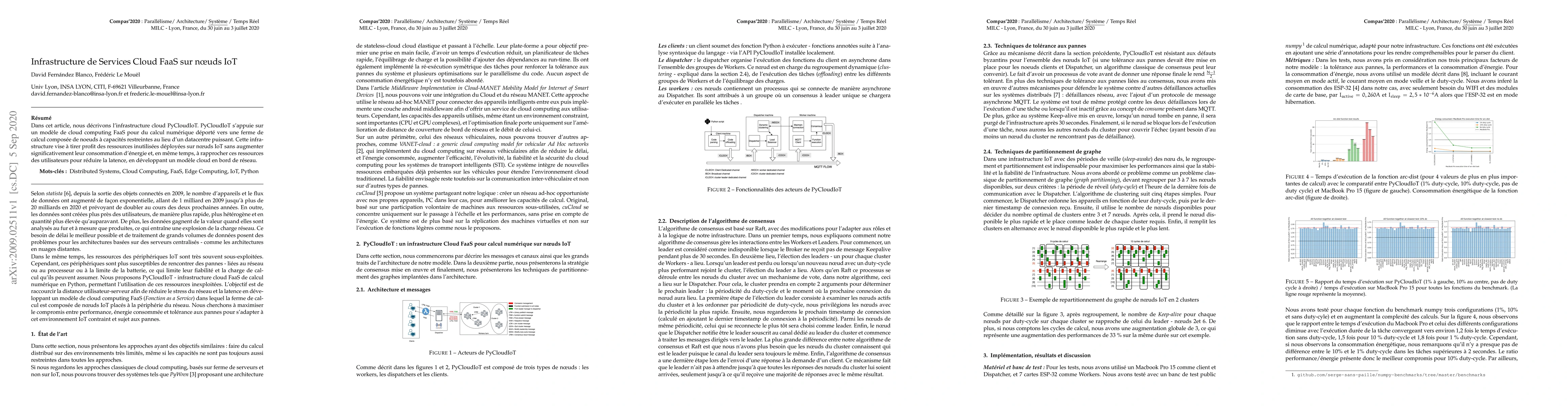 In this article, we describe the PyCloudIoT cloud infrastructure. PyCloudIoT uses a FaaS cloud computing model for offloading numerical computations on a cluster with resource-constrained nodes rather than powerful datacenter. This infrastructure aims at exploiting unused resources of IoT nodes - already deployed at the edge of the network - to reduce latency of user requests. This extra computation must be done without significant energy consumption - IoT nodes being battery-powered. -- Dans cet article, nous d\'ecrivons l'infrastructure cloud PyCloudIoT. PyCloudIoT s'appuie sur un mod\`ele de cloud computing FaaS pour du calcul num\'erique d\'eport\'e vers une ferme de calcul compos\'ee de noeuds \`a capacit\'es restreintes au lieu d'un datacentre puissant. Cette infrastructure vise \`a tirer profit des ressources inutilis\'ees d\'eploy\'ees sur n{\oe}uds IoT sans augmenter significativement leur consommation d'\'energie et, en m\^eme temps, \`a rapprocher ces ressources des utilisateurs pour r\'eduire la latence, en d\'eveloppant un mod\`ele cloud en bord de r\'eseau.