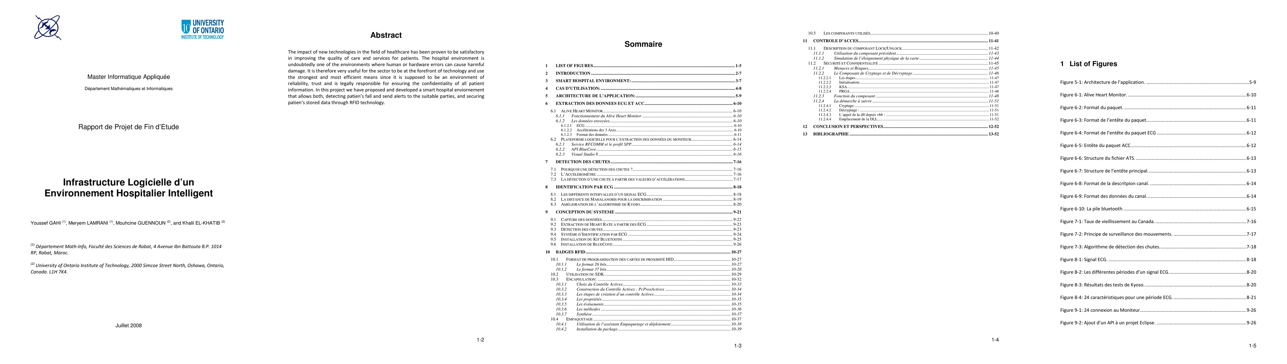 The impact of new technologies in the field of healthcare has been proven to be satisfactory in improving the quality of care and services for patients. The hospital environment is undoubtedly one of the environments where human or hardware errors can cause harmful damage. It is therefore very useful for the sector to be at the forefront of technology and use the strongest and most efficient means since it is supposed to be an environment of reliability, trust and is legally responsible for ensuring the confidentiality of all patient information. In this project we have proposed and developed a smart hospital enviornement that allows both, detecting patien fall and send alerts to the suitable parties, and securing patien stored data through RFID technology.