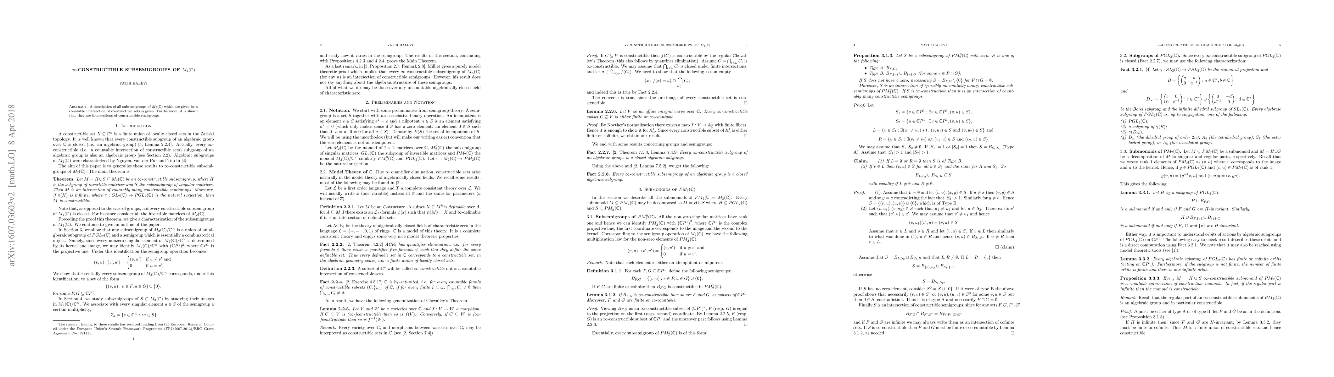 A description of all subsemigroups of $M_2(\mathbb{C})$ which are given by a countable intersection of constructible sets is given. Furthermore, it is shown that they are intersections of constructible semigroups.