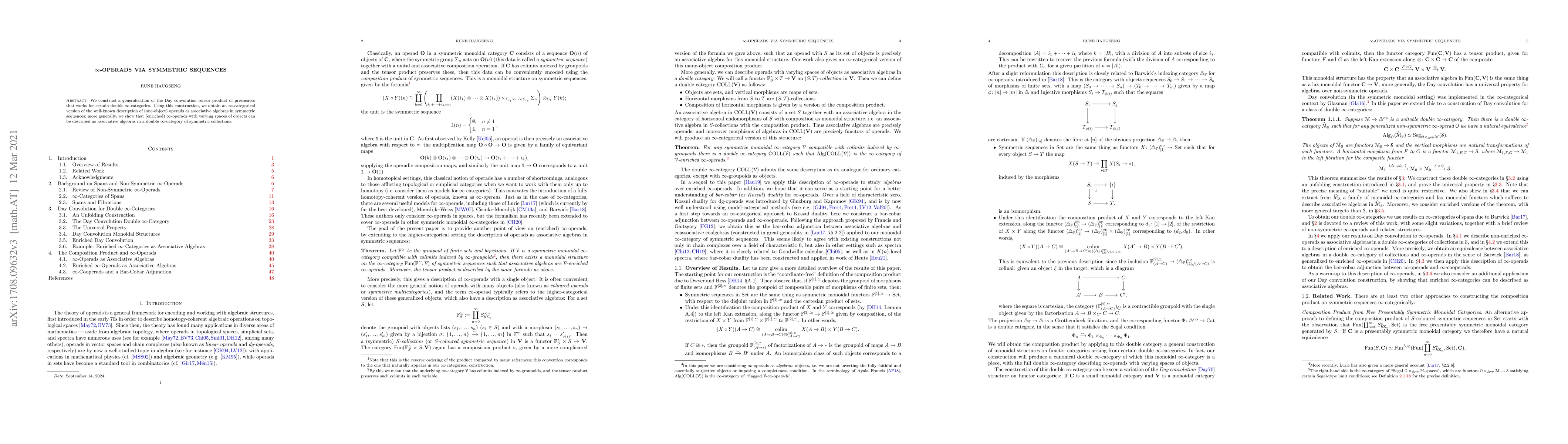 This paper constructs a Day convolution tensor product for double $\infty$-categories and shows that $\infty$-operads can be viewed as associative algebras in a double $\infty$-category of symmetric sequences. This provides an $\infty$-categorical analogue of the classical description of one-object operads in symmetric sequences.