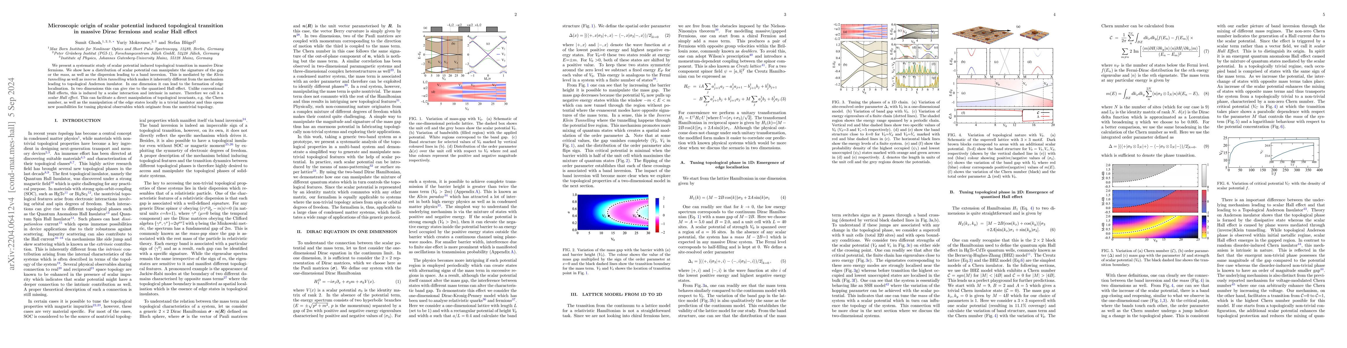 This paper explores how scalar potential can manipulate the topology of massive Dirac fermions, leading to phenomena like band inversion and edge localization. It introduces the Scalar Hall Effect in two dimensions, enabling the direct manipulation of topological invariants and edge states, thus offering new ways to tune topologically-protected physical properties.