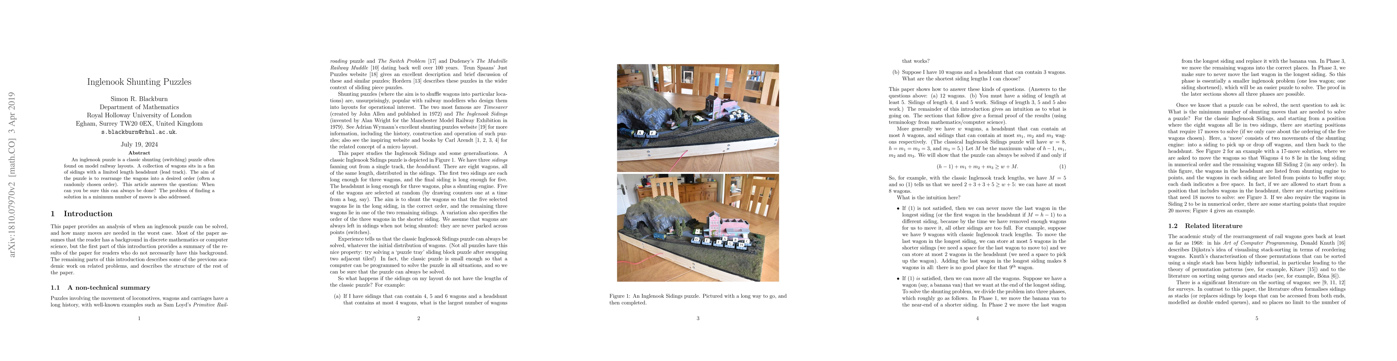 An inglenook puzzle is a classic shunting (switching) puzzle often found on model railway layouts. A collection of wagons sits in a fan of sidings with a limited length headshunt (lead track). The aim of the puzzle is to rearrange the wagons into a desired order (often a randomly chosen order). This article answers the question: When can you be sure this can always be done? The problem of finding a solution in a minimum number of moves is also addressed.