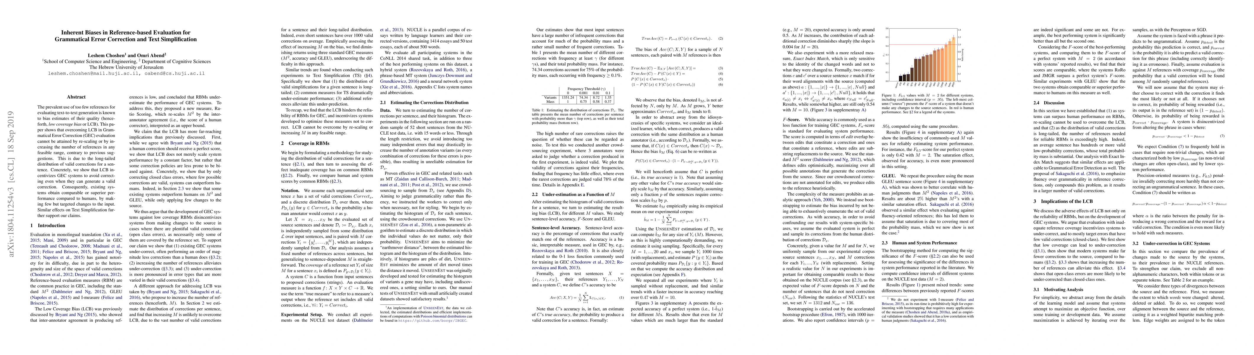 The prevalent use of too few references for evaluating text-to-text generation is known to bias estimates of their quality ({\it low coverage bias} or LCB). This paper shows that overcoming LCB in Grammatical Error Correction (GEC) evaluation cannot be attained by re-scaling or by increasing the number of references in any feasible range, contrary to previous suggestions. This is due to the long-tailed distribution of valid corrections for a sentence. Concretely, we show that LCB incentivizes GEC systems to avoid correcting even when they can generate a valid correction. Consequently, existing systems obtain comparable or superior performance compared to humans, by making few but targeted changes to the input. Similar effects on Text Simplification further support our claims.