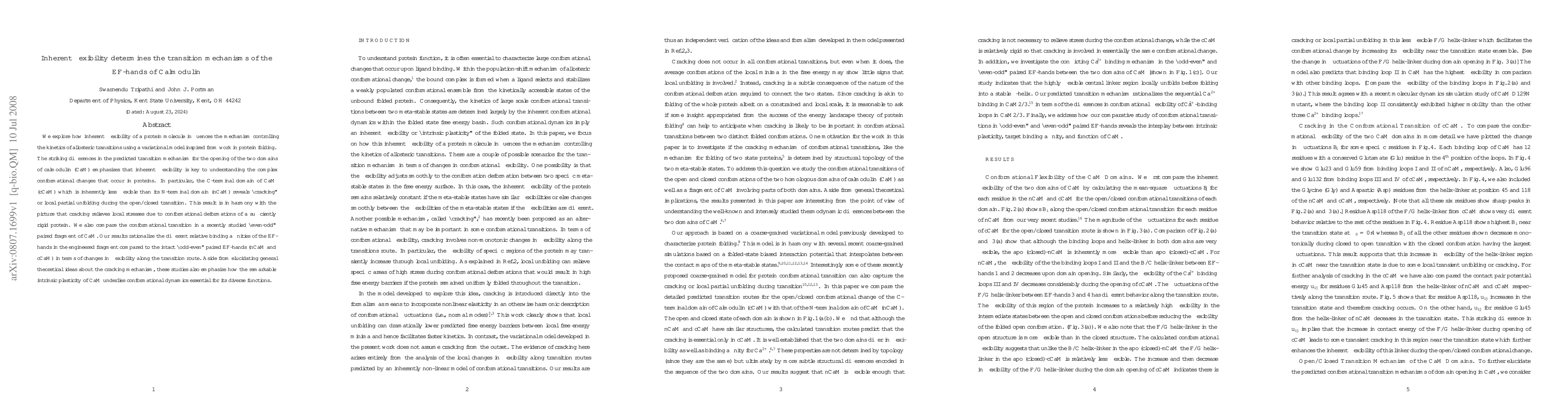 This research investigates the role of inherent flexibility in the allosteric transition mechanisms of calmodulin's EF-hands, revealing that the less flexible C-terminal domain undergoes "cracking" during conformational changes, which helps relieve local stresses. The findings highlight the intrinsic plasticity of calmodulin essential for its diverse functional roles.