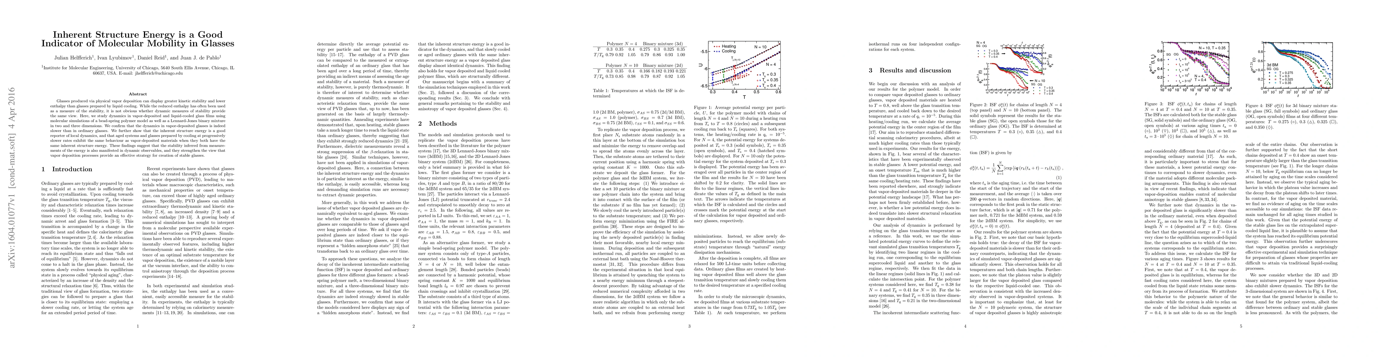 This study demonstrates that vapor-deposited glasses exhibit slower dynamics compared to those cooled from liquid, using molecular simulations. The inherent structure energy is identified as a reliable indicator of molecular mobility, suggesting that stable glasses prepared via vapor deposition or slower cooling rates share similar dynamic behavior when they have the same inherent structure energy.