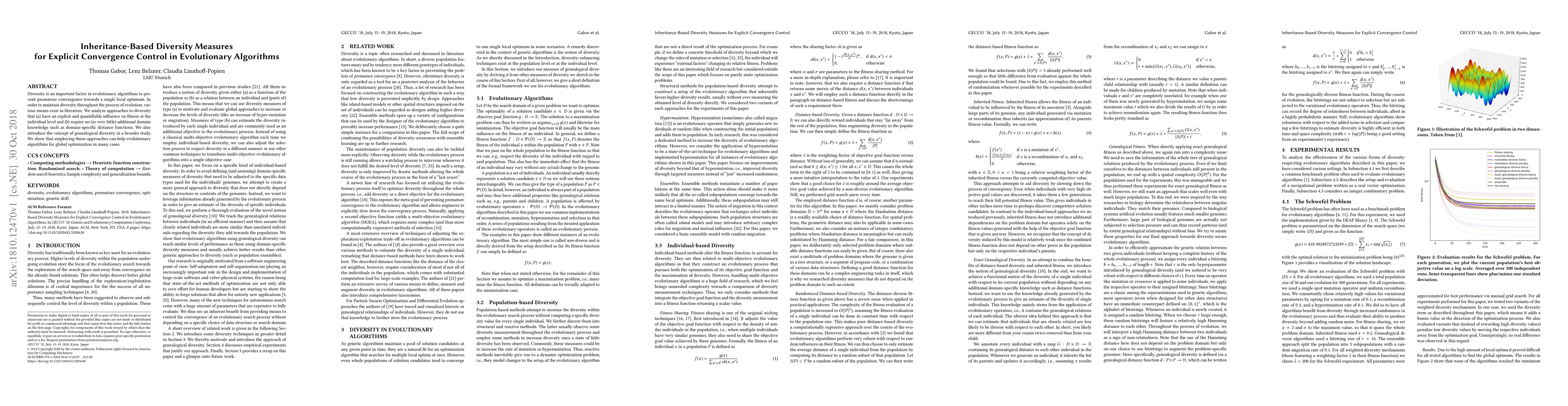 This paper investigates diversity measures for evolutionary algorithms that explicitly control convergence and require minimal domain knowledge. It introduces the concept of genealogical diversity and demonstrates its effectiveness in maintaining diversity and improving global optimization outcomes.