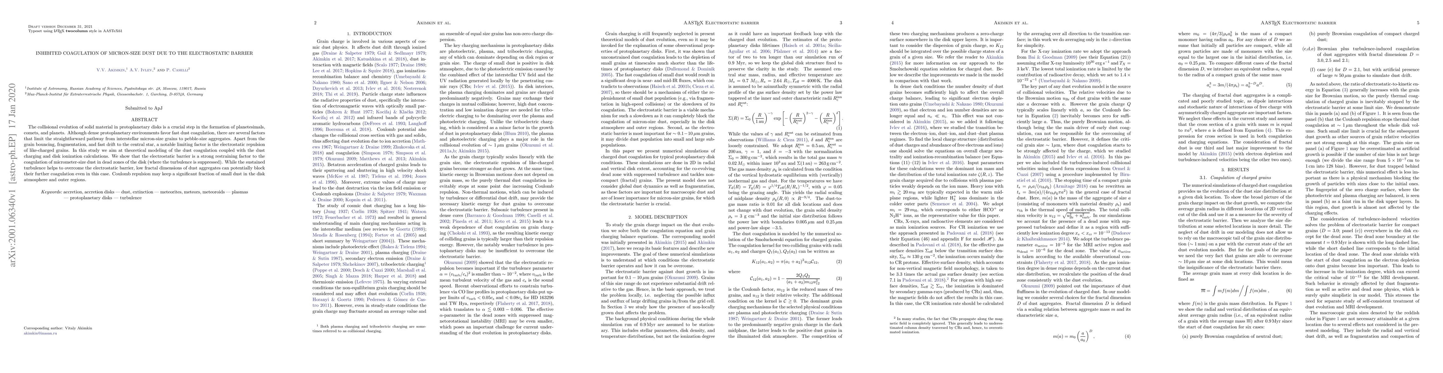 This study theoretically models the coagulation of micron-size dust in protoplanetary disks, highlighting the electrostatic repulsion as a significant barrier to dust aggregation in dead zones. The sustained turbulence can overcome this barrier, but low fractal dimensions of aggregates may hinder further coagulation.