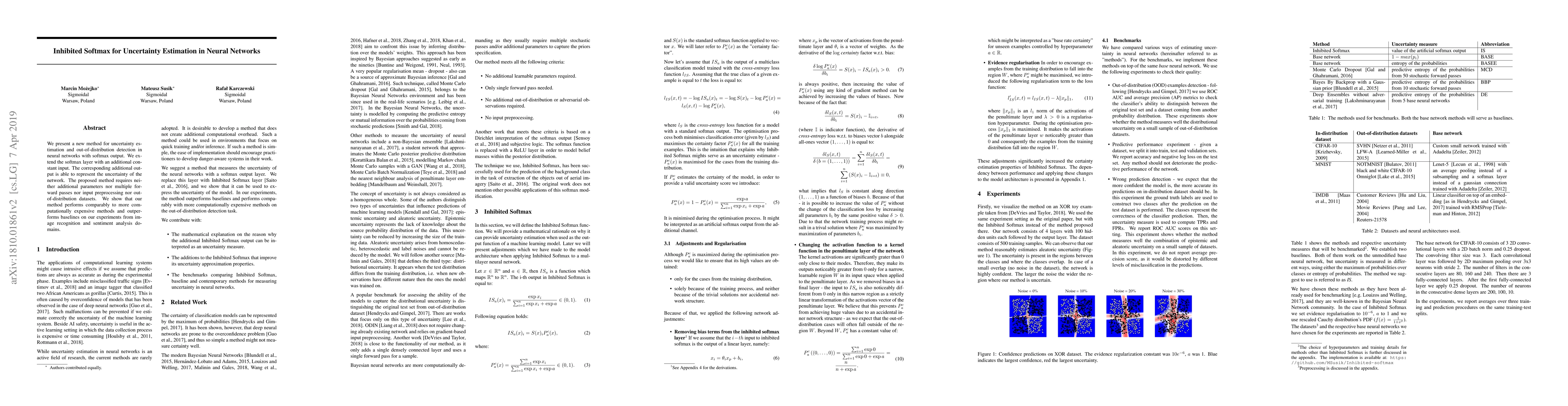 We present a new method for uncertainty estimation and out-of-distribution detection in neural networks with softmax output. We extend softmax layer with an additional constant input. The corresponding additional output is able to represent the uncertainty of the network. The proposed method requires neither additional parameters nor multiple forward passes nor input preprocessing nor out-of-distribution datasets. We show that our method performs comparably to more computationally expensive methods and outperforms baselines on our experiments from image recognition and sentiment analysis domains.