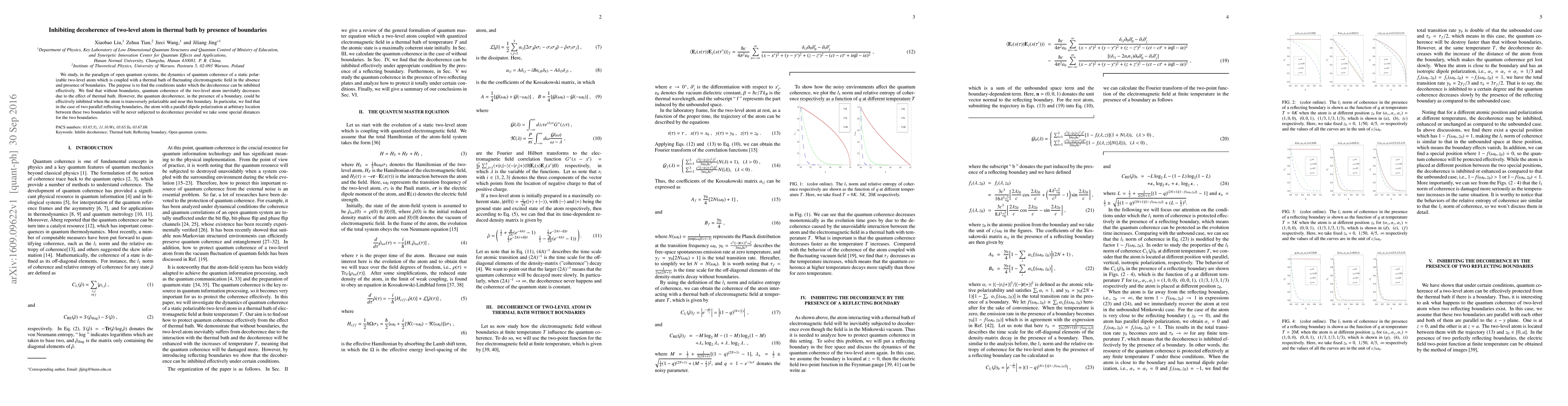 This paper investigates the dynamics of a two-level atom's quantum coherence in a thermal electromagnetic field, finding that decoherence is inevitable without boundaries. However, when boundaries are present, especially two parallel reflecting ones, the decoherence can be effectively inhibited if the atom is transversely polarizable and positioned at specific distances from the boundaries.