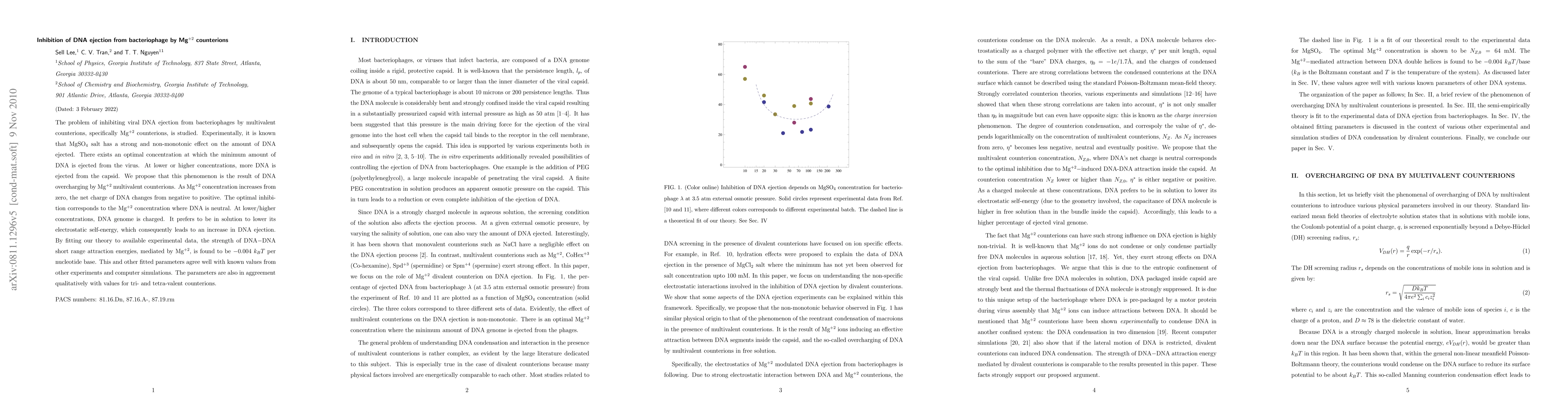 Researchers found that magnesium ions can inhibit viral DNA ejection from bacteriophages by binding to the DNA and neutralizing its charge, which reduces electrostatic self-energy and leads to increased DNA release at higher concentrations.