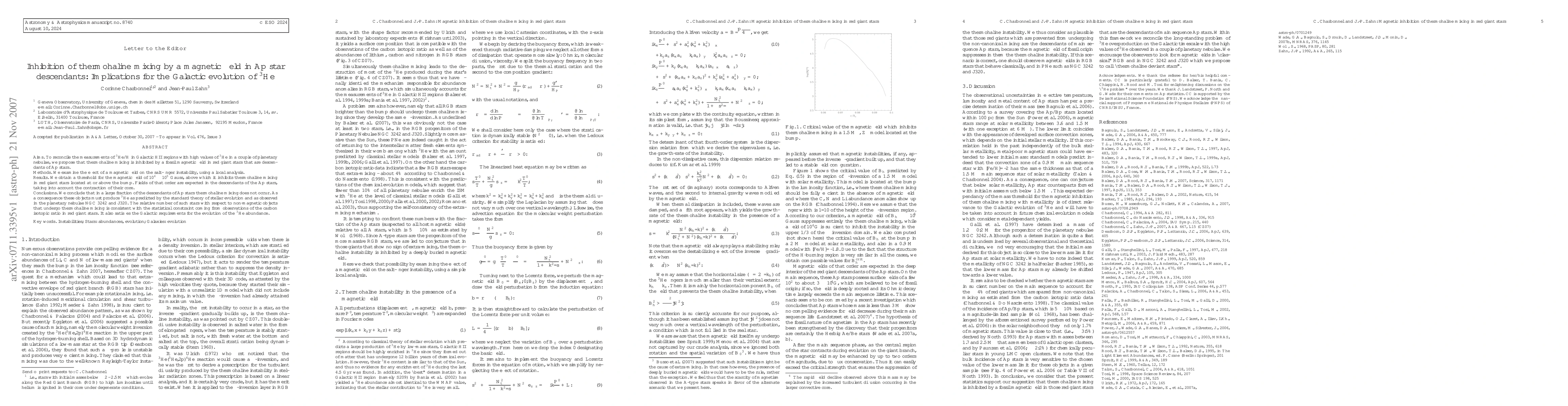 To reconcile the measurements of 3He/H in Galactic HII regions with high values of 3He in a couple of planetary nebulae, we propose that thermohaline mixing is inhibited by a fossil magnetic field in red giant stars that are descendants of Ap stars. We examine the effect of a magnetic field on the salt-finger instability, using a local analysis. We obtain a threshold for the magnetic field of 10^4 - 10^5 Gauss, above which it inhibits thermohaline mixing in red giant stars located at or above the bump. Fields of that order are expected in the descendants of the Ap stars, taking into account the contraction of their core. We conclude that in a large fraction of the descendants of Ap stars thermohaline mixing does not occur. As a consequence these objects must produce 3He as predicted by the standard theory of stellar evolution and as observed in the planetary nebulae NGC3242 and J320. The relative number of such stars with respect to non-magnetic objects that undergo thermohaline mixing is consistent with the statistical constraint coming from observations of the carbon isotopic ratio in red giant stars. It also satisfies the Galactic requirements for the evolution of the 3He abundance.