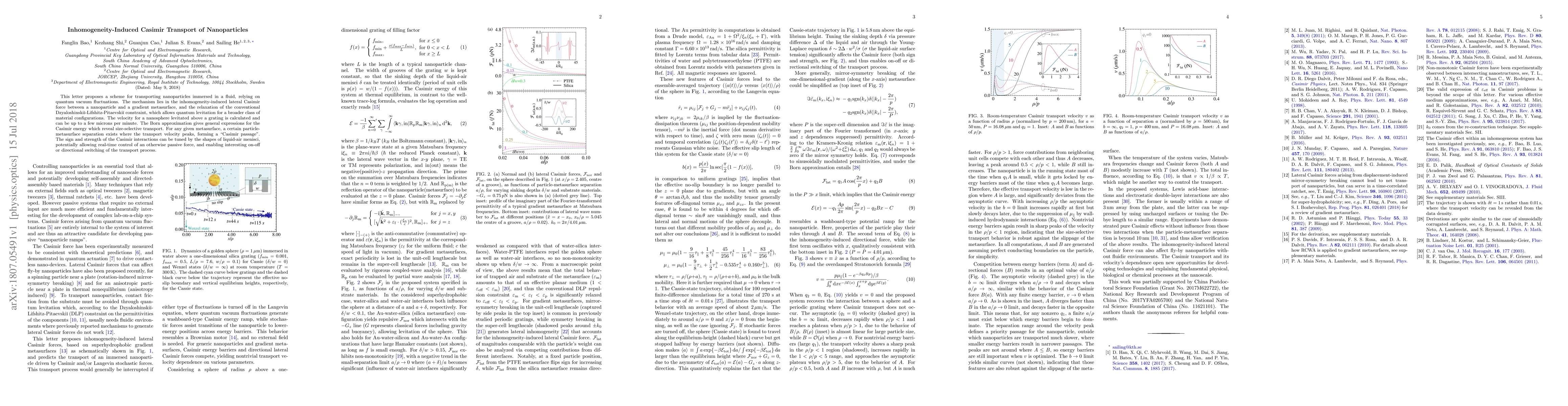 This letter proposes a scheme for transporting nanoparticles immersed in a fluid, relying on quantum vacuum fluctuations. The mechanism lies in the inhomogeneity-induced lateral Casimir force between a nanoparticle and a gradient metasurface, and the relaxation of the conventional Dzyaloshinski\v{i}-Lifshitz-Pitaevski\v{i} constraint, which allows quantum levitation for a broader class of material configurations. The velocity for a nanosphere levitated above a grating is calculated and can be up to a few microns per minute. The Born approximation gives general expressions for the Casimir energy which reveal size-selective transport. For any given metasurface, a certain particle-metasurface separation exists where the transport velocity peaks, forming a "Casimir passage". The sign and strength of the Casimir interactions can be tuned by the shapes of liquid-air menisci, potentially allowing real-time control of an otherwise passive force, and enabling interesting on-off or directional switching of the transport process.