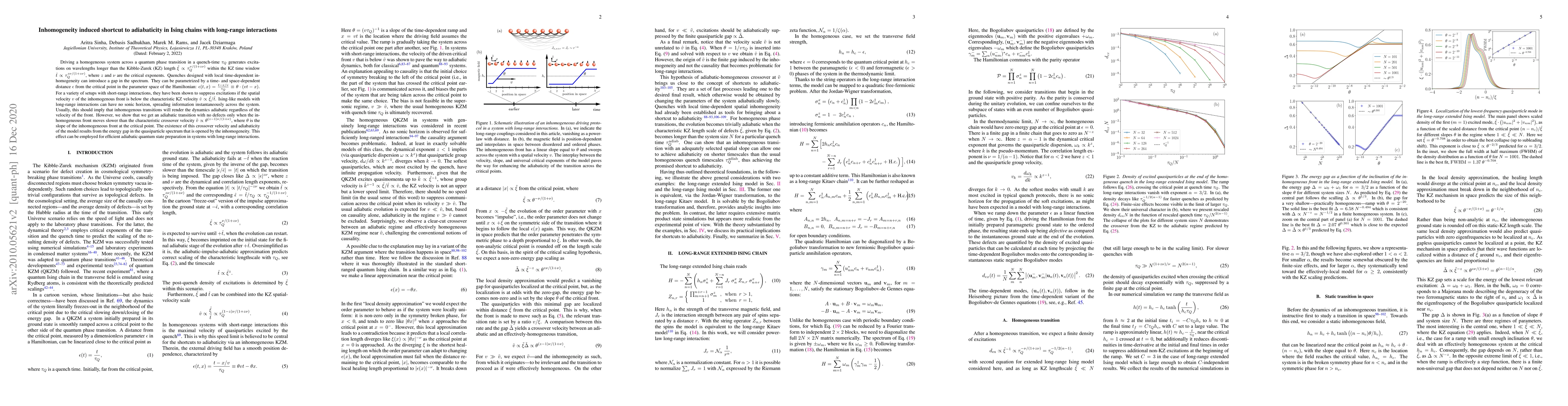 This paper investigates how inhomogeneity can induce an adiabatic transition in Ising chains with long-range interactions, demonstrating that the dynamics remain adiabatic only when the inhomogeneous front moves slower than a specific crossover velocity. The presence of an energy gap in the quasiparticle spectrum due to inhomogeneity enables efficient adiabatic quantum state preparation.