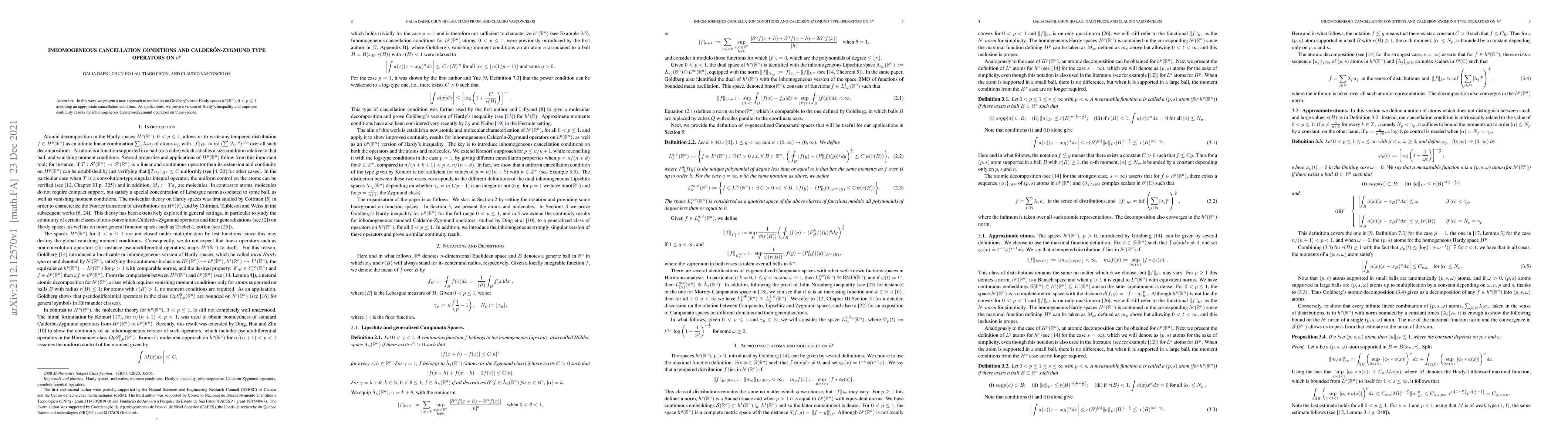 This paper introduces a novel method for analyzing molecules on local Hardy spaces $h^p(\mathbb{R}^n)$ under inhomogeneous cancellation conditions, leading to a new version of Hardy's inequality and enhanced continuity results for inhomogeneous Calderón-Zygmund operators.