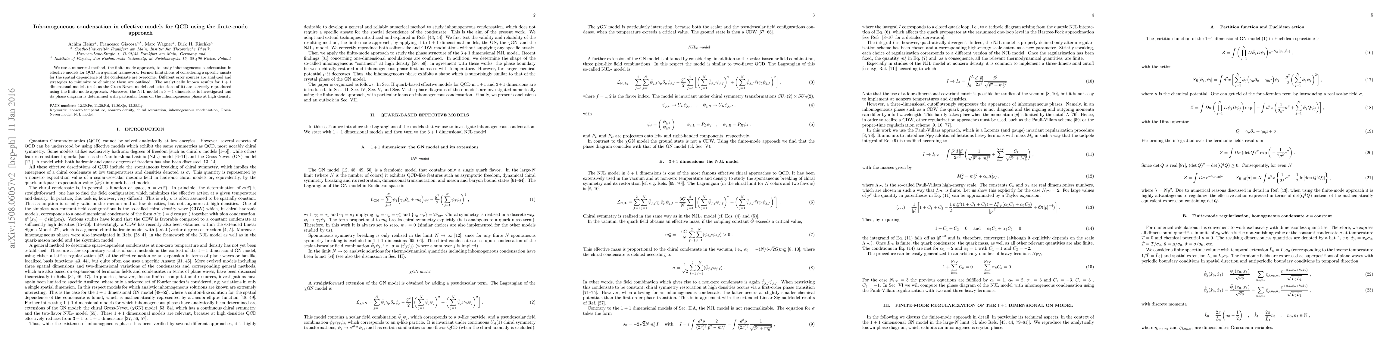 Researchers developed a new method to study inhomogeneous condensation in effective models for Quantum Chromodynamics (QCD) using the finite-mode approach, successfully reproducing known results and exploring the phase diagram of the NJL model in high-density conditions.